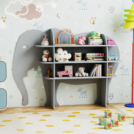The bookcase with spacious 3-tier storage space is perfect to display or store multiple items. With sturdy wooden structure and anti-tipping kit, it stands with high stability. Moreover, the smooth rounded corners and an 86 cm height make this Montessori-inspired storage organizer perfectly suits little hands and curious minds. Ideal for bedrooms, classrooms, or daycares, the book shelf with well-crafted details encourages young children to develop good tidying habits in a fun and playful way. Transform clutter into creativity with this delightful and unique elephant bookshelf. Bullet Point: Charming Elephant Design: This toddler bookshelf features an adorable and vivid elephant shape that adds a playful and friendly touch to kids room. Its fun design makes organizing books and toys a delightful activity for little ones. Spacious 3-Tier Storage: With 3-layer roomy shelves, this children’s bookcase stores books, toys, building blocks, stationery, and decorations. This ideal home organizer will create a neat and tidy playing area. Sturdy & Safe Build: Crafted from premium MDF, this wooden bookcase stands firm and strong. It also includes anti-tipping kit to ensure safe and firm placement, giving parents peace of mind in busy playrooms and nurseries. Child-Friendly Bookcase: Made of safe and reliable materials, this kids’ Montessori storage organizer features smooth rounded corners perfect for toddlers. And the 86 cm kids-friendly height is perfect for little hands and curious minds to explore safely. Encourage Good Habits: Perfect for bedroom, classroom, and daycare, this toddler bookcase helps children develop tidying and organizing skills early on. Moreover, it’s certified by EN71, and suitable for kids over 3 years old. Specifications: Colour: Grey Material: MDF Overall Dimensions: 47” x 11” x 34”/120 x 28 x 86 cm (L x W x H) Total Weight Capacity: 66 lbs/30 kg Net Weight: 31 lbs/14 kg Recommended Age: 3+ Years Old Is Assembly Required: Yes Box Qty: 1 (May vary by batch) Package Includes: 1 x Kids Bookcase 1 x Instruction