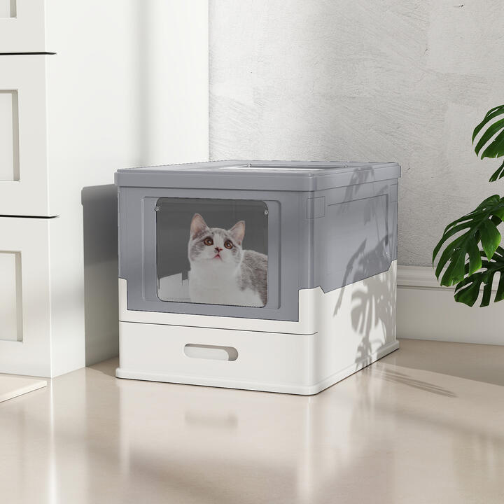 Built for contemporary living, the lightweight cat litter box folds flat with minimal effort, making it ideal for easy storage, travel, or smaller homes. Additionally, the pull-out drawer-tray ensures convenient refilling and cleaning. Inside, the roomy layout provides ample space for kittens and medium-sized cats. The innovative dual-entry system allows simple access for your pet while significantly reducing litter scatter, ensuring your floors remain cleaner. Favored by inquisitive cats, the covered enclosed cat toilet combines privacy with ease of use. A fully enclosed design with a secure lid keeps smells in check. Bullet Point: Slide-out Tray for Easy Cleaning: Designed with a pull-out drawer system and high-sided trays, the foldable cat toilet with lid makes daily scooping and cleaning faster, neater, and free from spills. The washable design allows you to keep it tidy and fresh effortlesslyCover Enclosed Design: Thanks to the fully enclosed design, the covered cat litter box enclosure keeps unpleasant smells locked away and provides your furry friends with a private, calming haven they'll love.Front Entry & Top Exit: The unique 2-way entrance gives curious cats freedom to enter from the front and exit via the flip-top. Furthermore, the thoughtful design will greatly cut down on litter scatter and encourage good habits.Spacious Interior for Cats: With interior dimensions of 44 x 32.5 x 34.5 cm(L x W x H), the large cat toilet gives cats ample space for turning, digging, and stretching. It can accommodate kittens or medium sized cats up to 10 kg.Foldable & Portable Design: The cleverly engineered foldable cat litter box can be quickly folded into a compact design and expanded, making it an unbeatable choice for compact apartments or easy storage between uses. Also, the 2.5 kg lightweight design adds portability for travel. Specification: Color: Blue + White/Green + White/Grey + WhiteMaterial: PP, PETProduct Dimensions: 50 x 37.5 x 36.5 cm (L x W x H)Folding Dimension: 50 x 37.5 x 19.5 cm (L x W x H)Size of Drawer Tray: 44 x 32.5 x 8.5 cm (L x W x H)Front Opening Size: 20 x 18 cm (L x W x H)Weight Capacity: 10 kgNet Weight: 2.5 kgBox QTY: 1(May vary by batch)Is Assembly Required: Yes Package Includes: 1 x Foldable Cat Litter Box 1 x User’s Manual