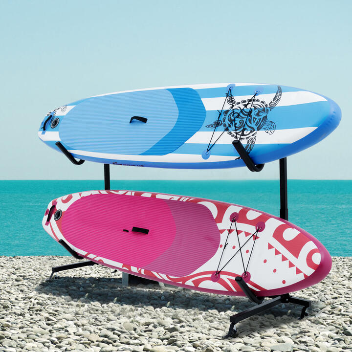 The freestanding outdoor kayak holder is equipped with 6 lockable wheels for smooth transport and unwavering stability wherever you need it, from your patio to your garage. The stable construction of the metal kayak stand ensures reliable support, accommodating up to 80kg. Moreover, the kayak storage rack includes an anti-tip system, enabling you to securely anchor the unit to the wall for added peace of mind. The garage kayak rack with 2 holders is designed to house up to 2 kayaks, canoes, paddleboards, or surfboards, ensuring your equipment remains protected and your space clutter-free. Bullet Point:Suitable for Multiple Watercraft: Equipped with 2 sturdy hooks, the kayak storage rack accommodates up to 2 kayaks, canoes, paddleboards, or surfboards across 2 spacious levels. The vertical arrangement maximizes storage efficiency and maintains organization, which caters perfectly to water sport enthusiasts.Heavy-Duty Metal Frame: Built with a reinforced metal structure, the kayak stand delivers superior stability and steadfast support for your gear. Each tier of the kayak paddle holder supports up to 40 kg, offering a robust combined load capacity of 176 lbs/80 kg.Exceptional Stability: The included anti-tip hardware allows the rack to be firmly fixed to a wall, preventing accidental falls and boosting overall safety during use. In addition, the T-shaped base further increases the overall stability.Indoor & Outdoor Mobility: Coming with 6 universal casters, the outdoor kayak storage rack glides effortlessly to your garage, campsite, or dock. Additionally, the 6 brakes mean you can move the metal kayak stand as needed and secure it in wherever you need storage.Detailed Product Information: With a dimension of 244 x 67 x 125 cm(L x W x H), the kayak rack for garage balances generous space with durability, fitting neatly into storage rooms while providing steadfast support for your collection of watercraft. Specification:Colo: BlackMaterial: MetalProduct Dimensions: 244 x 67 x 125 cm(L x W x H)Net Weight: 9.5 kgMaximum Bearing Capacity: 80 kgKayak Capacity: 2Box QTY: 1(May vary by batch)Is Assembly Required: Yes Package includes:1 x Freestanding Kayak Rack1x User’s Manual