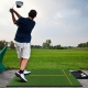 Get ready for your golf practice with this golf hitting mat! This premium golf practice mat consists of high-quality synthetic grass turf surface and thick non-slip EVA bottom, which gives you a realistic hitting feel. There are 6 ball tee positions to meet different needs of left and right-handed golfers. Plus, the package includes 2 rubber tees and 2 alignment sticks, ideal for beginners. This golf hitting mat is easy to roll and unroll so that you can take it effortlessly, which is suitable for indoor and outdoor uses. Bullet Point: Feel Like Real Grass: This golf hitting mat is constructed in 3 layers: ①synthetic grass turf: simulate real grass turf with a 10/15 mm grass filament length②anti-tearing layer: turf and padding are securely joined with great cushioning③EVA bottom: high-elasticity and non-slip. Premium Non-Slip EVA Bottom: The bottom layer measures 10 mm in thickness is made of EVA non-slip padding for confident practice, which is thicker than others selling on the market (only 5 mm in thickness). Multiple Ball Tee Positions: This golf training mat is designed with 6 ball tee positions for different training needs, which makes it ideal for both right and left-handed golfers. The golf training mat is available in 2 sizes: 152 cm x 92 cm/152 cm x 117 cm What You Will Get: The package includes a 152 cm x 92 cm/152 cm x 117 cm golf hitting mat, 2 rubber tees and 2 golf alignment sticks, which makes this mat a great helper of indoor and outdoor golf practice. Friendly for Storage and Carrying: This golf mat is easy to fold for storage and transport, providing you with realistic hitting feeling anywhere you go. It is suitable for various occasions, such as home, office, golf range, golf club and more. Features: Consists of non-slip EVA bottom and premium synthetic grass turf Offers realistic hitting feel for practice Built with 6 different ball tee positions to meet various needs Suitable for both left and right-handed golfers Comes with 2 rubber tees and 2 alignment sticks Easy to roll up for space-saving storage or transport Ideal for indoor and outdoor places, such as home, office, golf range, etc. Specifications: Size: S Color: Green Material: EVA Overall Dimension:152 cm x 92 cm (L x W) Thickness: 20 mm Net Weight: 4 kg Size: M Color: Green Material: EVA Overall Dimension: 152 cm x 117 cm (L x W) Thickness: 20 mm Net Weight: 5.5 kg Size: L Color: Green Material: EVA Overall Dimension: 152 cm x 92 cm (L x W) Thickness: 25 mm Net Weight: 4.5 kg Size: XL Color: Green Material: EVA Overall Dimension: 152 cm x 117 cm (L x W) Thickness: 25 mm Net Weight: 5.5 kg Package includes: 1 x Golf Hitting Mat 2 x Rubber Tee 2 x Golf Alignment Stick Box Qty:1(May vary by batch)