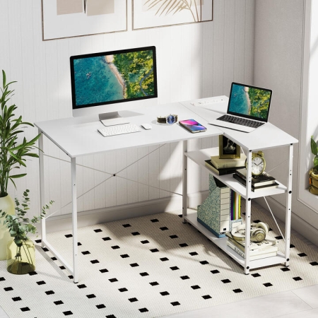 Transform your space! Unlock the secret to a supercharged, organized workspace with our L-shaped corner computer desk, designed to power up productivity! The computer workstation has a built-in power strip for charging convenience, ample storage with 2 side shelves, and a sturdy design that stands the test of time. Plus, the reversible design and 3-position adjustable shelf provides a customizable solution. Ready for anything, from high-stakes gaming to intensive studying, this office desk is a game-changer for bedrooms, dorms, and home offices. Need a sleek command center that handles it all? Grab this multifunctional desk and elevate your environment in style! Bullet Point: Power Up Your Workspace: Get ready to streamline your setup with the functional L-shaped desk! It features a versatile built-in power strip with 2 AC outlets, a USB port, and a Type-C port – perfect for keeping all your devices charged and ready to go. Customize Your Storage: This office desk includes 2-tier open shelves to keep your tabletop free from clutters. The middle shelf has 3 adjustable positions, and it can even be removed to free up space for your computer tower. Maximize Your Space: Make the most of every corner with this corner desk! Its reversible storage shelves offer 2 installation ways, so you can easily adapt it to fit your room’s layout and maximize your workspace. Built to Last: Need a computer desk that can handle the weight of your work? This heavy-duty metal frame is reinforced with dual X-shaped structures and adjustable foot pads for rock-solid stability and long-lasting support. Unleash Your Creativity: Whether you’re gaming, working, or studying, this versatile PC desk is your go-to solution! It’s perfect for bedrooms, dorms, home offices, or anywhere you need a versatile and stylish workspace. Specification: Color: Rustic Brown + Black/Black/Grey + Black/White Material: Engineered Wood, Metal Overall Dimensions: 118 x 86 x 74 cm (L x W x H) Dimensions of Left Panel: 88 x 58 cm (L x W) Dimensions of Right Panel: 86 x 30 cm (L x W) Dimensions of Shelf: 80 x 26 cm (L x W) Space Between Bottom Shelf and Top: 66 cm Adjustable Clearance of Shelf: 10 cm Power Cord Length: 150 cm AC Outlet: 220-240V/10A USB + Type C: 5V/3.1A 15.5W Weight Capacity of Tabletop: 110 kg Weight Capacity of Shelf: 15 kg Net Weight: 16.5 kg Box QTY: 1(May vary by batch) Package Includes: 1 x Corner Desk 1 x User Manual