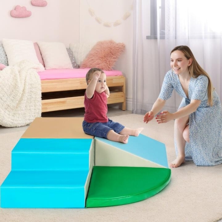 Do you want to give your kid a perfect gift? Our climbing and crawling foam play set could help kids develop important motor skills and hand-eye coordination as they play at home, in daycare or in the classroom. These blocks are lightweight enough for toddlers to arrange and rearrange freely. So it is beneficial for their imagination and creativity. Safely designed with soft pearl cotton filler and PU cover, it is soft enough to protect during playtime, but also firm enough to support vigorous exercise. Your kid can use it to climb, slide, walk and play. In a word, this set is a perfect toy for kids featuring safety, interest and benefits. Don't hesitate to buy one! Bullet Points: Help Kids Grow Up: The fun foam playset consists of five differently shaped blocks that allow children to combine in any way they want, to stimulate their imagination and creativity. In addition, kids can improve their hand-eye coordination and motor skills while playing, which is essential for their development.High Quality and Safety Materials: The inner part of the toy is made of environment-friendly pearl cotton and the outer surface is covered with soft PU leather. In addition, our toy set is ASTM certified, non-toxic, tasteless, not easy to deform, and can be used for a very long time.Safe Active Play: The set has a dense foam structure that is very thick and elastic. There are no hard structures and sharp corners, making it extremely safe for the children. It is soft enough to cushion crash landings during playtime, and firm enough to support climbing, sliding, walking, frolicking, etc.Wide Scope of Application: Our toy set is lightweight and stackable without taking up too much space, making it easy to move and store. It is suitable for placing in kindergartens, homes, shopping malls, supermarkets and restaurants where kids can enjoy themselves and parents can relax.Happy Time & Easy to Clean: These toys are designed specifically for kids to enjoy, play and learn. It is big enough, so your kids can play with their friends, creating lifelong friendships. Moreover, it is dirt-resistant and easy to clean, saving you time and energy. Features: Includes five differently shaped blocks that can be combined freely Designed for children to exercise their physical coordination and exercise ability Soft and impact-resistant EPE filler stands up long time use The dirt-resistant and durable PU cover is easy to clean It is lightweight and stackable for easy movement and storage It has great elasticity to protect children from getting hurt Widely used in various situations like kindergartens, homes and shopping malls Specifications: Colour: Colorful (shown as picture) Material: PU, EPE Net Weight: 3.4 kg Square Block: 40 x 40 x 20 cm Rectangle Block : 40 x 20 x 20 cm Cylinder: 40 x 20 x 20 cm Half Cylinder: 40 x 40 x 21 cm Trapezoid: 40 x 20 x 61 cm Age Range: 9 months to 3 years old Package Includes: 1x Foam Pay Set Box Qty:1(May vary by batch)