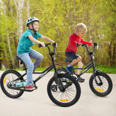 A kids bicycle for ages 4-7 with an adjustable saddle height of 58-66 cm. The lighted structure delights little adventurers. The bicycle features LED lights that offer 7 colors and 7 lighting modes, while the headlight and lighted training wheels make the bike more attractive. Safety is a top priority with dual brakes and a fully-enclosed chain guard. The AS/NZS 1927 and CPN No.6 of 2004 compliant bike features a carbon steel frame that supports up to 65 kg. Thanks to the enduring tires, children can enjoy a safe riding experience on the lawn, cement, brick, and more. It is also easy to remove training wheels. The bike includes a bell, safety reflectors, and padded seat for added convenience. Setting up the bike is hassle-free as it comes 95% pre-assembled. Bullet Point: Accompany Kid’s Growth: Designed to accommodate your growing child, the bicycle offers a 58-66 cm adjustable saddle height and is ideal for kids aged 4-7. Plus, AS/NZS 1927 and CPN No.6 of 2004 compliant, the kids bike could be a safe gift. Please measure kid’s INSEAM and compare with SADDLE HEIGHT to check if the rider can touch the ground. Charming Lighted Feature: Light up every ride with the children bicycle, featuring an LED lighted structure that offers 7 vibrant colors and 7 dynamic lighting modes. More, the bike comes with a bright headlight and glowing training wheels which intensify in brightness as the wheels spin faster. Secure Dual Brake System: The kids bicycle features a responsive hand brake and a coaster brake for instant stops when pedaled backwards. Moreover, safety is further enhanced by a fully-enclosed chain guard, protecting little fingers and ensuring their rides are not only fun but also exceptionally safe Sturdy and Stable Structure: The kids bike has a strong carbon steel frame with a large load capacity of 65 kg, while including detachable training wheels for great stability. Each rubber tire is anti-slip, puncture-proof, and wear-proof, ensuring a secure and smooth ride on various surfaces such as brick, lawn, cement, asphalt, and more. Specifications: Colour: Navy Blue Material: Carbon Steel, Rubber, PU Overall Dimensions: 122 x 54 x 71 cm (L x W x H) Size of Seat: 22 x 13.5 cm (L x W) Saddle Height: 58-66 cm Wheel Size: 16” Inseam Height: 53-61 cm Suitable Rider Height: 105-130 cm Suitable Age: 4-7 Years Old Max Load Capacity: 65 kg Net Weight: 11 kg Package Includes: 1 x Kids Bike 1 x User Guide Box Qty:1(May vary by batch)