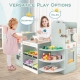 Watch as your little ones become budding entrepreneurs, transporting their business to their favourite spots, taking orders, serving delicious treats, and making bold conversations. To encourage hand-on play, the ice cream machine features an innovative lever and button system with magnets, so that kids have fun matching the flavors. The playable vending machine also features realistic press-to-fall buttons. Instead of spending their time glued to the screens, your kids can now enjoy hours of imaginative play, all while enhancing their cognitive and fine motor skills. Crafted with love and child-friendly materials, this ASTM and CPSIA compliant toy ice cream cart is safe for your growing toddlers. Ideal for birthdays or holidays, it's a gift that promises scoops after scoops of fun! Bullet Point:Place Your Order: Keep your little ones entertained for hours with this lovely ice cream cart, featuring an awning, a counter with ice cream stand, screen and scanner, a vending machine, and loaded with sweet treats like cakes, popsicles, ice creams and frozen vending goods. Set the stage for realistic order-taking and watch your kids’ business flair thrive. Fun-filled Interactions: This pretend play ice cream stand encourages your kids create their own custom ice cream combos. Push the lever, press the button on the magical ice cream machine, and serve premium ice cream that won’t fall when turned up-side down. Help yourself to the press-and-fall chilly goods in the vending machine area until you have your fill. Educational Play: With its handle and rubber-edged wheels, kids can set up their toy ice cream stand wherever they prefer to practice their communication skills with parents or peers. They can also learn to identify colors, shapes and amounts, and develop hand-eye coordination with every scoop they serve. After playtime, the storage shelves are perfect for honing tidying up habits. Child-friendly Designs: To accompany kids’ growth, this ASTM and CPSIA compliant ice cream playset is crafted with quality solid wood and MDF, finished with child-safe paint and carefully rounded at corners to safeguard active future entrepreneurs. All the included accessories are designed to fit into toddlers’ little palms, and are free of splinters to protect kids’ delicate skin. Ideal Gift: This ice cream cart play set makes a fun and educational gift for boys and girls above 3, adding to the joy of birthdays, Christmas, end of school years or any other special occasions. Its kids-friendly size and bright colors easily transform any corner of living room, playroom, nursery or daycare center into a hub of creativity and imaginations. Specifications:Colour: Cyan/PinkMaterial: MDF, Wood, RubberProduct Dimensions: 75.5 x 31 x 88 cm (L x W x H)Table Height: 45.5 cmSuitable Age: 3+Net Weight: 11 kg Package Includes:1 x Kids Ice Cream Cart1 x User Guide Box Qty:1(May vary by batch)