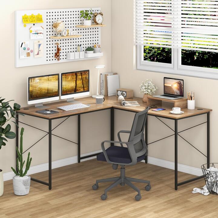 Because of sturdy steel construction, the computer desk has great weight capacity of 115 kg. And it also has adjustable foot pads for better stability. Considering that customers has different house types, the writing desk is designed to be reversible. You can assemble it into a L-shaped desk or a long desk. The complete workstation is so spacious that 2 people can work at the same time. Besides, there is a movable and non-slip monitor display shelf on the desk which keeps your laptop at appropriate sight level to help you sit in a correct posture. In this way, you do not have to work with your head down for hours. Bullet Point: 2 Desk Shapes: To accommodate different house types, the 150 x 150 x 74 cm L-shaped desk can be transformed into a 240 x 60 x 74 cm long desk. And regardless of the shape, the reversible computer desk provides great space so that 2 people can work at the same time. Monitor Display Shelf: To prevent you from keeping head down throughout long working day, our writing desk features a 10 cm high desktop shelf where you can place laptop. In this way, the computer screen can be at a more ergonomic height. And you can also take the movable shelf off to gain more space. Reliable Steel Construction: With reinforced steel structure, the home office desk shows perfect performance in sturdiness, of which overall weight capacity reaches 115 kg. Meanwhile, the table is also equipped with adjustable foot pads to maintain better stability even on uneven floor. Practical Application: Whether it is for home or office, our reversible workstation can satisfy your requirements. You can place the workstation in living room, study, office room and so on. 3 cable holes on the desktop will help arrange the wires and keep tidy. Quick and Easy Assembly: The assembly process of our computer desk is very simple. With our detailed manual, you can finish assembling by yourself in a short time. Besides, its daily maintenance is also very time and labor-saving. You just need to wipe it regularly. Features: 2 different forms applicable to different house types 240 x 60 cm desktop suitable for 2 people to work at the same time 10 cm high monitor display shelf brings laptop to ergonomic height 3 cable holes for tidy and neat wire arrangement Steel frame for great weight capacity of 115 kg Anti-slip points under shelf and adjustable foot pads for better stability Ideal for study room, reading room and office Anti-scratch desktop for long-time use Convenient cleaning with waterproof surface Specifications: Colour: Natural Material: Engineered Wood, Steel Dimension of L-Shaped Desk: 150 x 150 x 74 cm (L x W x H) Dimension of Straight Desk: 240 x 60 x 74 cm (L x W x H) Dimension of Monitor Display Shelf: 40 x 24 x 10 cm (L x W x H) Weight Capacity of Desktop: 100 kg Weight Capacity of Monitor Display Shelf: 15 kg Overall Weight Capacity: 115 kg Net Weight: 24 kg Package Includes: 1 x L-Shaped Computer Desk 1 x User Guide