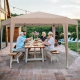 The 3-tier vented top of the patio umbrella allows heat to rise and escape more easily, providing a cooler shade area underneath. Also, the 3 m umbrella is equipped with tilt mechanism, allowing you to adjust the angle of your canopy with ease. The market umbrella is crafted with polyester fabric, which is not only wear-resistant and anti-fading, but also drizzle-resistant. The structure of the garden table umbrella is fortified with a 38mm metal pole and 8 sturdy umbrella ribs. Featuring a crank handle, the large outdoor umbrella can be opened and closed with ease. Designed for easy storage and maintenance, the 3-tier vented umbrella is constructed of 2-section detachable poles. Also, a fixing tie is included to fasten the folded umbrella. Bullet Point: 3-tier Vented Design: Thanks to the 3-tiered vented design, the patio umbrella offers increased airflow for relaxing on hot summer days. Furthermore, this design helps reduce wind pressure on the umbrella, minimizing the risk of it being toppled by gusts.Superior Canopy: The garden table umbrella comes with a polyester canopy that resists fading and wear, ensuring prolonged lifespan. Moreover, the canopy will protect you against harsh sunlight or light rain, making it the perfect choice for backyard gathering or poolside relaxation. Tilt System and Crank Handle: The outdoor umbrella features an easy-to-operate crank handle that ensures seamless opening and closing. Plus, the push-button tilt mechanism allows you to adjust the umbrella based on the sun's position to provide optimal shade.Heavy-duty Structure: The heavy-duty patio umbrella is supported by a 38 mm powder-coated metal pole and 8 thick ribs that provide a solid foundation. For added stability, it is recommended to secure the umbrella with a weight base(not included).Easy Assembly and Storage: Comprising 2 section poles, the 3 m outside umbrella can be easily assembled or disassembled, promoting convenient storage and transport. Also, the fixing tie aids in securely holding the folded canopy. Please close and store the umbrella when not in use. Specifications: Colour: Gray/Beige/BrownMaterial: Metal, Polyester Overall Dimension: 300 cm x 300 cm x 245 cm (L x W x H)Umbrella Rim Height: 199 cmNet Weight: 7 kg