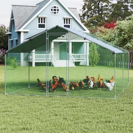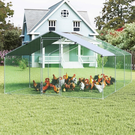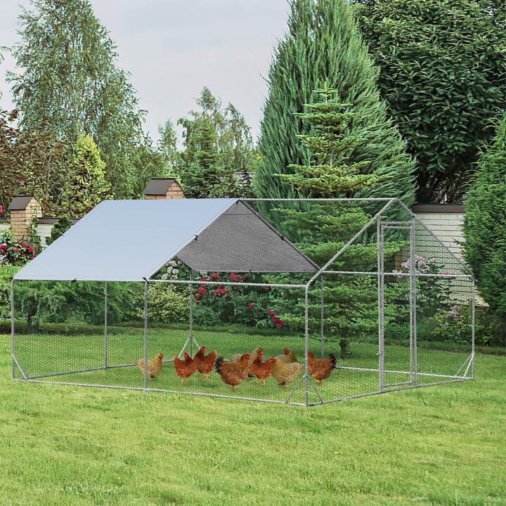 Still finding a large cage for your chickens? Our walk-in pen run is your perfect choice! This chicken coop is designed with a lockable door and close hexagonal mesh, both of which prevent your pets from escaping and protect them from predators. Moreover, you don’t really need to worry about what if bad weather comes because the sturdy galvanized metal frame with ground stakes ensures reliable stability to well withstand rigorous conditions. The waterproof and sun-protective oxford cover also helps create a cozy living environment for poultry. And water, snow and debris can run off the spire-shaped roof easily. All in all, our large poultry cage is a safe and comfortable shelter for chickens, ducks, rabbits, dogs and other animals. Bullet Point: Spacious Chicken Coop for Various Animals: This walk-in pen run that measures 200 cm x 300 cm x 195 cm (L x W x H)/400 cm x 300 cm x 195 cm (L x W x H)/600 cm x 300 cm x 195 cm (L x W x H) is large enough to accommodate a flock of chickens and other poultry such as ducks, gooses, sheep, rabbits, dogs and so on. In this spacious cage, they can play, exercise, have a rest, etc. Sturdy and Stable Construction: The main structure of this chicken coop is composed of thickened and rustproof galvanized steel pipes, which makes the pen run more stable and durable for outdoor use. Plus, the included ground stakes help secure the hutch firmly and stability. Waterproof & Sun-protective Cover: The silver-coated 210D oxford cloth has outstanding waterproof and sun-protective performance, which can protect your little friends from heavy rain, snow and strong sunlight. Better yet, the spire-shaped construction facilitates water drainage and avoids snow accumulation. Safety Lockable Design: The strong and durable hexagonal mesh not only protects poultry from eagles, owls and other bird predators but also ensures good air circulation. The lockable door with a metal hutch prevents chickens from escaping while allowing you to walk into the poultry cage to feed chickens with ease. Easy to Assemble: The metal chicken coop is easy to put together. All the hardware and instructions for assembly are included in the package, which will help a lot during the installation process. With elastic ropes and spring buckle clips, it’s convenient for you to detach and fix the oxford cover. Features: Spacious interior space for a lot of chickens Suitable for chickens, ducks, rabbits, dogs and other animals Perfect for your backyard and farm Anti-rust galvanized metal frame for great durability and sturdiness Ground stakes add extra stability Waterproof and sun-protective oxford cover for dealing with bad weather A pitched roof avoids water and snow accumulation Dip-coated steel mesh for great protection and air circulation Lockable door for easy access and maximum safety Clear instruction and numbered parts for quick assembly Specifications: Colour: Silver Material: Galvanized Metal + 210D Oxford Cloth Overall dimension: 200 cm x 300 cm x 195 cm (L x W x H)/400 cm x 300 cm x 195 cm (L x W x H)/600 cm x 300 cm x 195 cm (L x W x H) Net weight: 24 kg/33 kg/41.5 kg Package Includes: 1 x Chicken Coop 1 x Instruction Box Qty:1(May vary by batch)