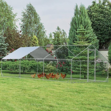 Still finding a large cage for your chickens? Our walk-in pen run is your perfect choice! This chicken coop is designed with a lockable door and close hexagonal mesh, both of which prevent your pets from escaping and protect them from predators. Moreover, you don’t really need to worry about what if bad weather comes because the sturdy galvanized metal frame with ground stakes ensures reliable stability to well withstand rigorous conditions. The waterproof and sun-protective oxford cover also helps create a cozy living environment for poultry. And water, snow and debris can run off the spire-shaped roof easily. All in all, our large poultry cage is a safe and comfortable shelter for chickens, ducks, rabbits, dogs and other animals. Bullet Point: Spacious Chicken Coop for Various Animals: This walk-in pen run that measures 200 cm x 300 cm x 195 cm (L x W x H)/400 cm x 300 cm x 195 cm (L x W x H)/600 cm x 300 cm x 195 cm (L x W x H) is large enough to accommodate a flock of chickens and other poultry such as ducks, gooses, sheep, rabbits, dogs and so on. In this spacious cage, they can play, exercise, have a rest, etc. Sturdy and Stable Construction: The main structure of this chicken coop is composed of thickened and rustproof galvanized steel pipes, which makes the pen run more stable and durable for outdoor use. Plus, the included ground stakes help secure the hutch firmly and stability. Waterproof & Sun-protective Cover: The silver-coated 210D oxford cloth has outstanding waterproof and sun-protective performance, which can protect your little friends from heavy rain, snow and strong sunlight. Better yet, the spire-shaped construction facilitates water drainage and avoids snow accumulation. Safety Lockable Design: The strong and durable hexagonal mesh not only protects poultry from eagles, owls and other bird predators but also ensures good air circulation. The lockable door with a metal hutch prevents chickens from escaping while allowing you to walk into the poultry cage to feed chickens with ease. Easy to Assemble: The metal chicken coop is easy to put together. All the hardware and instructions for assembly are included in the package, which will help a lot during the installation process. With elastic ropes and spring buckle clips, it’s convenient for you to detach and fix the oxford cover. Features: Spacious interior space for a lot of chickens Suitable for chickens, ducks, rabbits, dogs and other animals Perfect for your backyard and farm Anti-rust galvanized metal frame for great durability and sturdiness Ground stakes add extra stability Waterproof and sun-protective oxford cover for dealing with bad weather A pitched roof avoids water and snow accumulation Dip-coated steel mesh for great protection and air circulation Lockable door for easy access and maximum safety Clear instruction and numbered parts for quick assembly Specifications: Colour: Silver Material: Galvanized Metal + 210D Oxford Cloth Overall dimension: 200 cm x 300 cm x 195 cm (L x W x H)/400 cm x 300 cm x 195 cm (L x W x H)/600 cm x 300 cm x 195 cm (L x W x H) Net weight: 24 kg/33 kg/41.5 kg Package Includes: 1 x Chicken Coop 1 x Instruction Box Qty:1(May vary by batch)