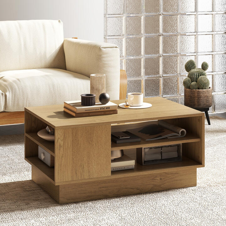 Upgrade your living room with this stunning centerpiece that not only commands attention with its pristine white hue and sleek contemporary lines but also keeps your space clutter-free! Imagine a coffee table that can support up to 100 kg, allows you to store all your essentials neatly, and doubles as your work or snack station! No more bumping into sharp corners thanks to its clever recessed base design. Perfect for bustling homes needing that touch of modern elegance and practicality. Don’t miss out – make this multifunctional masterpiece yours and revel in a tidier, more stylish living space! Bullet Point:Dual-Tier Storage: This coffee table features 2-tier storage shelves, offering ample space to keep books, magazines, or decorative items organized and easily accessible. Enhance your living room’s functionality and aesthetic with this elegantly structured piece. Spacious Tabletop, Multifunctional Use: Boasting a generous tabletop, this center table provides a perfect platform for everything from your morning coffee to evening snacks, also ideal as a work surface for your laptop or creative projects. Thus, it is an ideal addition to living room. Robust Construction: Crafted with high-density engineered wood boards to ensure durability, this accent table supports up to 100 kg. Equipped with non-slip foot pads, it stands stable and sturdy, preventing floor scratches and ensuring your peace of mind. Recessed Base Design: Designed with a smart recessed base, this rectangle coffee table prevents the common issue of bumping or knocking your feet against the table’s base, making it a safer choice for busy households. Contemporary Style: With simple lines and a clean white finish/rustic wood grain finish, this modern coffee table easily complements any modern living space. Its contemporary flair makes it an outstanding centerpiece that elevates the style quotient of your home decoration. Specification:Colour: White/NaturalMaterial: Engineered WoodOverall Dimensions: 86 x 56 x 41 cm (L x W x H)Dimensions of Compartment: 84.5 x 53.5 x 13 cm (L x W x H)Width of Side Opening: 54.5 cmBase Height: 11 cmWeight Capacity of Tabletop: 60 kgWeight Capacity of Shelf: 20 kgNet Weight: 18 kg Package Includes:1 x Coffee Table1 x User Manual