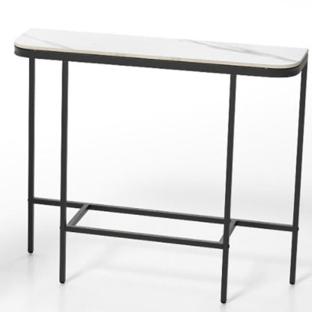 The white faux marble top paired with a gold/black metal frame brings a contemporary feel, making it a perfect accent table for hallways, foyers or behind sofas. Its sturdy metal frame with reinforced crossbars and adjustable foot pads provides reliable stability, while 2 anti-toppling devices and rounded corners ensure enhanced safety throughout your home. The spacious tabletop offers plenty of room to organize essentials or display decorative items, keeping belongings easily accessible and neatly arranged as a versatile console sofa table. Chic White and Gold Design: The white faux marble top paired with a gold metal frame creates a modern and elegant entryway table that enhances the overall aesthetic of your home, adding a contemporary feel to your living space.Chic White and Black Design: The white faux marble top paired with a black metal frame creates a modern and elegant entryway table that enhances the overall aesthetic of your home, adding a contemporary feel to your living space.Spacious Tabletop Surface: This console sofa table provides a large surface, ideal for displaying decorations, organizing essentials or placing frequently used items conveniently within reach.Robust Construction: The behind couch table features a strong metal frame reinforced with crossbars for dependable support. Additionally, the adjustable foot pads maintain balance for extra stability.Enhanced Safety for Reliability: Equipped with 2 anti-toppling devices to secure the entrance table firmly in place, it offers enhanced safety for homes with children or pets. Plus, the rounded corners add an extra layer of protection.Versatile Use for Multiple Spaces: The accent table fits perfectly in your entryway or living room, serving as a functional and decorative piece. Moreover, the smooth surface allows for convenient cleaning. Specification:Color: White and Gold/White and BlackMaterial: Metal, Sintered StoneOverall Dimensions: 110 x 30 x 91 cm (L x W x H)Net Weight: 12 kgWeight Capacity: 30 kgBox QTY: 1(May vary by batch)Is Assembly Required: Yes Package includes:1 x Console Table1 x Instruction