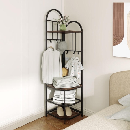 This multipurpose hall tree is a great storage option for your entryway, hallway or bedroom. It features generous storage space, including 5 double hooks, 2 open shelves and 1 enclosed cabinet with 2 pneumatic rods. You can use it to store your bags, hats, clothes, ornaments and other stuff. Meanwhile, there is a sitting bench for you to conveniently change shoe. The bench bears a weight up to 90kg. Its solid frame and non-slip foot pads ensure overall sturdiness. And the additional anti-toppling design helps to firmly attach it into the wall for more stability and security. You don't need to worry about its sudden collapsing. Bullet Point: More than a Clothes Rack: This coat rack organizer is a perfect combination of 5 double prong hooks and 1 sitting bench, which can fulfill your daily requirements. The bench is ideal for sitting for changing shoes or having a rest, which holds up to 90kg. Sufficient Storage Space: Our home storage organizer is a perfect choice to keep your room tidy and clean. 2 top compartments are nice for you to place your belongings, such as clothes, hats, storage baskets and so on. And there is 1 enclosed cabinet with 2 compartments to store your shoes, pillows or blankets. Safe & Reliable Structure: Thanks to its solid frame and anti-toppling device, our hall tree will stay stable and steady on the ground. And it's not easy to wobble or collapse. Furthermore, the anti-slip foot pads add more sturdiness and protect the floor from being scratched. Versatile & Considerate Design: Beautiful wood grain and classic color make it a perfect decoration to your entryway, hallway or bedroom. In addition, the premium metal pneumatic rod and magnetic catch allow you to easily open or close the cabinet door. Space-saving Design & Easy Cleaning: Measuring 100 cm x 40 cm x 160 cm(L x W x H), this space-saving hall tree occupies less floor space and helps you make full use of limited space. What's more, the smooth surface can be effortlessly wiped clean with a soft cloth. Features: 2 open compartments and 1 door cabinet with 2 compartments for storage Double prong hooks & wide siting area for different uses Pneumatic rods and magnetic catches for easy opening or closing Anti-toppling device for added stability and security Safe & stable design High-quality engineered wood material for long-term use Ideal for hallway, doorway, bedroom, etc Smooth and waterproof surface for easy maintenance Easy to assemble with clear user manual and complete accessories Specifications: Colour: Black/ White Material: Engineered Wood Overall Dimension: 100 cm x 40 cm x 160 cm (L x W x H) Height of the Top Compartment:20 cm Height of the Door Cabinet: 43 cm Distance Between the Top Compartment and Bench: 95 cm Width of the Base: 39 cm Weight Capacity of the Bench: 90 kg Net Weight: 32.5 kg Package includes: 1 x Coat Rack with Entryway Bench 1 x Instruction Box Qty:1(May vary by batch)