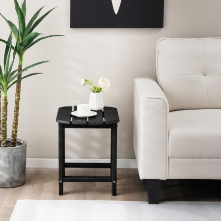 Bring more convenience to your life with this outdoor side table! With an easy 3-step installation, you can get a stylish and modern side table. It will refresh your outdoor space while bringing sufficient space to store different items. Likewise, the height matches your Adirondack chair (not included) perfectly. During outdoor use, the selected HDPE material will give this patio table weather resistance as well as fade resistance to fit the outdoor environment better. Moreover, it does not require special maintenance, just wipe it with a damp cloth if you want to clean it. Apart from outdoor use, you can use this side table in the living room, bedroom and bathroom for different demands. Bullet Point: Weather Resistance: Made of selected HDPE material, this outdoor side table is not only weather-resistant to withstand outdoor changing weather but fade-resistant to always retain its original color after a long time use. Meanwhile, it also features the advantage of being sun-protective, recyclable and waterproof. Low Maintenance: To give you peace of mind when using it outdoors, this Adirondack side table requires no special maintenance, such as painting, staining or waterproofing. If you want to clean it, just wipe it with a damp cloth occasionally for great convenience. Practical Side Table: The tabletop measures 37*48*46cm in size, which provides you with sufficient storage space to put drinks, snacks and other items, making them within reach. Besides, the curved edge ensures safety during use. And the gap between the slats effectively prevents water accumulation. Wide Application: In addition to using this small rectangular patio table outdoors with your Adirondack chairs (not included), this practical furniture can be used as a side table in the living room, a functional storage table in the bathroom and a nightstand in the bedroom to meet your different needs. Installation in 3 Steps: By using the premium 304 stainless steel screws to connect each part, the assembly of this outdoor side table is quite simple for time-saving. Please do not tighten all the screws until all the holes are aligned. Features: Selected HDPE material for weather resistance and fade resistance No cracking or deformation even after prolonged use No need to paint, stain or waterproof for maintenance free Wipe the surface with a damp cloth for daily cleaning Rectangular tabletop makes different items within reach Come with 91kg strong bearing capacity The slatted design effectively prevents water accumulation Curved edge for better user experience Match your Adirondack chair (not included) perfectly Add beauty to indoor or outdoor spaces All needed 304 stainless steel screws included for simple installation Specifications: Colour: Black/Grey/Coffee/White Material: HDPE Overall Dimension:48 x 37 x 46 cm (L x W x H) Net Weight:4 kg Weight Capacity:91 kg Package Includes: 1 x Outdoor Side Table 1 x Instruction Box Qty:1(May vary by batch)