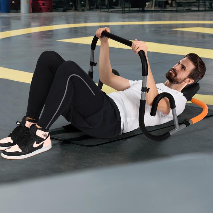 Enhance your ab workout routine with this efficient and versatile ab cruncher. Designed to target and strengthen your abdominal muscles, this ab cruncher offers a challenging and effective exercise experience. The ab cruncher features a comfortable headrest, providing support and stability during your workout. With its ergonomic design, it promotes proper form and reduces strain on your neck and back, allowing you to focus solely on your core muscles. Its sturdy frame and high-quality materials ensure long-lasting performance and reliability. Whether you are a beginner or an experienced fitness enthusiast, this ab cruncher is suitable for all fitness levels. Bullet Point: Maximum Comfort and Support: This ab cruncher is designed with a headrest to provide maximum comfort and support during your workout sessions. The padded headrest allows you to find the perfect position for your neck and head, reducing strain and ensuring a comfortable experience. Effective Core Exercise: This ab cruncher is specifically designed to target and strengthen your core muscles. With its ergonomic design and smooth motion, it allows for effective crunches, helping you achieve a toned and defined abdomen. Durable and Sturdy Construction: Made with high-quality materials, our ab cruncher is built to last. The sturdy frame and reinforced steel construction ensure stability and durability, even during intense workouts. Lightweight and Portable Design: The ab cruncher is compact and easy to store, making it ideal for small spaces. It is also lightweight and portable, allowing you to take it with you wherever you go, whether it's to the gym or on a trip. Hassle-Free Assembly: This ab cruncher features adjustable resistance levels, allowing you to customize your workout according to your fitness level. Whether you're a beginner or an advanced user, this feature ensures a challenging and effective workout every time. Features: Constructed with a heavy-duty metal frame Increases comfort level and reduce injuries with soft padded headrest Provides effective exercise for abdominal muscles Lightweight and portable, easy to carry with you Convenient to store when not in use Versatile workout equipment for users of all levels Suitable for home gym, office and more Specifications: Color: Orange Material: Metal + Foam Overall Dimension: 67 cm x 66 cm x 61 cm (L x W x H) Weight Capacity: 100 kg Net Weight: 3.5 kg Package includes: 1 x Ab Cruncher 1 x User Guide Box Qty:1(May vary by batch)