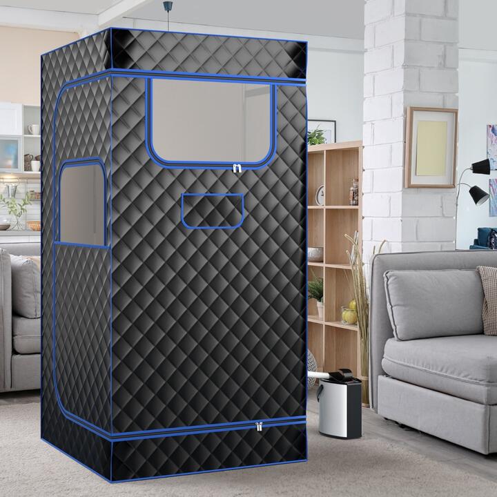 This sauna tent offers dual control options with a remote control or smart panel for precise temperature settings from 35℃ to 63℃ and timers up to 90 minutes. With a stainless steel inner pot, the 3L steam generator allows for customizable experiences with added ingredients such as ginger, vinegar, or salt. The fogging function enhances skin mist absorption. Safety features include an unlocked 2-layer tempered glass lid, overheat protection, and no dry heating design. The 4-layered waterproof tent has zippered windows and door to ensure good air circulation and easy access. Additional accessories like a folding chair, medicine box, wooden foot massager, and storage bag provide a complete sauna experience and achieve better comfort. The benefits of sauna include pain relief, skin improvement, stress relaxation, and more. Bullet Point: Dual Control Ways and Efficient Heating: Whether through the remote control or the smart control panel, you can quickly set the desired temperature to start a pleasant sauna experience. In addition, the home sauna box supports 9 levels of temperature adjustment from 35℃ to 63℃ and auto shutoff from 15 min to 90 min. 3L Steam Generator and Fogging Function: As you want, you can add ginger, vinegar, or salt to the stainless steel inner pot of the steam generator. Besides, the sauna tent features an advanced fogging function that better promotes the adsorption of water mist by the skin to improve your skin condition. Tempered Glass Lid and More Protections: To avoid accidental explosions, the steam generator comes with an unlocked 2-layer tempered glass lid, which also features an anti-scalding handle. Additionally, the sauna box kit boasts overheat protection and no dry heating design, safeguarding optimal using safety. Zippered Sauna Tent and Extra Storage: The easy-to-install indoor sauna kits is made of 4-layered waterproof fabric that provides soft touch, while having zippered windows and door to ensure good air circulation and easy access. Besides, it is designed with a storage pocket where you can place the remote control or your phone. Folding Chair and Other Accessories: The package contains more complete accessories, including a medicine box, a wooden foot massager, a mat, a storage bag as well as a sauna chair that is foldable and supports up to 90 kg. Create a personalized sauna session that helps ease fatigue, relieve stress, and promote sleep. Features: The powerful 3L steam generator has a stainless steel inner pot for a long-time use Supports 9-level temperature that is adjustable from 35℃ to 63℃ The stainless steel home sauna has a 9-level timer that ranges from 15 min to 90 min Fogging function can facilitate skin absorption of mist to achieve smooth skin Explosion-proof tempered glass lid is 2-layered to enhance the protection No dry heating and overheat protection to further promote the using safety 4-layered fabric of sauna tent is waterproof, long-lasting and comfortable Seamlessly stitched oxford cloth of chair is tear-proof, anti-fading and skin-friendly Allows for 2 controlling ways with the remote control and smart control panel The remote control included is battery-powered and batteries are not included Additional storage pocket to keep your phone or remote control easily accessible Designed with an anti-scalding handle that protects your hands from burns Easy-to-carry handle of steam generator and the folding chair for easy portability Features smooth 2-way zippers that are installed on 2 windows and one door It can relieve stress, promote sleep, ease physical pain, improve skin, and more Straightforward instructions guide you to easily finish the quick installation Specifications: Color: Black/Coffee/Gray Material: Stainless Steel, Waterproof Fabric, ABS, Oxford Cloth, Metal Size of Sauna Tent: 91 x 91 x 183 cm (L x W x H) Size of Foldable Chair: 45 x 44 x 64 cm (L x W x H) Height of Seat: 38 cm Load Capacity of Chair: 90 kg Size of Steam Generator: 22 x 19.5 x 30.5 cm (L x W x H) Capacity of Steam Generator: 3L Size of Sweating-Absorbing Mat: 81 x 76 cm (L x W) Size of Wood Foot Massager: 27 x 12 cm (L x W) Length of Each Soft Hose: 46 cm, 35 cm Adjustable Temperature Range: 35-63℃ Adjustable Timer Range: 15-90 min Max Remote Control Distance: 10 m Net Weight: 9 kg Package Includes: 1 x Sauna Tent 1 x Steam Generator 1 x Remote Control 1 x Medicine Box 1 x Wooden Foot Massager 1 x Sweating-Absorbing Mat 1 x Folding Chair 1 x Storage Bag 2 x Soft Hoses 1 x User Guide Box Qty:1(May vary by batch)