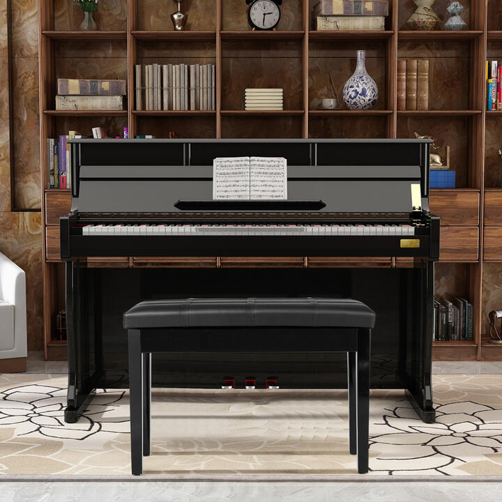 Constructed with sturdy solid wood, the piano bench can support two persons safely. Covered with PU leather and padded with high-resilience sponge, you will feel more enjoyable and relaxed. Equipped with a big storage compartment under the seat that provides specious space for holding sheet music and books. What's more, it has anti-slip feet pads under wood legs, protecting your floor from being scratched. Don't hesitate to buy one! Bullet Point: Sturdy Construction: This piano bench is made of high quality solid wood and PU leather. Solid wooden legs offer strong support, making it sturdy and durable enough to stand steadily. With a anti-skid foot pad under each leg to protect floor from being scratched. Built-in Storage Compartment: There is a large built-in storage compartment under the seat for storing music, books or other items. The top lid and hidden storage are connected by premium bracket lock which can hold the seat lid in fully open position. Padded Seat: Padded with high-resilience sponge and covered with soft PU leather, our piano bench makes you feel very comfortable even if practicing for a long time. Elegant Design and Multi-functional Usage: The unique and elegant design allows this piano bench to blend in any decoration style perfectly. It is suitable for many occasions, such as orchestras, recording studio, music bands, concerts, school, churches, home, etc. Duet Piano Bench: The overall dimension of our exclusive piano bench is 75 x 35 x 50CM, it can easily accommodate 2 adults for duet performances or comfortable tutoring. Specifications: Color: Black Material: PU leather and solid wood Overall size:75 x 35 x 50 cm (LxWxH) Weight capacity: about 200kg Net weight: about 6kg Box Qty: 1(May vary by batch) Package includes: 1 x Piano Bench 1 x Instruction