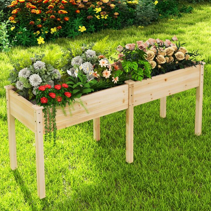 Crafted from natural fir wood material, it is built for robust and year-round planting. The horticulture raised garden bed is divided to allow organized planting of various plants, from lush vegetables to fragrant herbs. Besides, the 8 drainage holes prevent water logging and protect plant roots. What’s more, the 77 cm proper height ensures comfortable gardening and prevents pets from stepping. The elevated planter box fits perfectly in various outdoor spaces, be it a balcony, patio and more. Plus, the DIY flexibility allows you to customize your garden space as you wish. Bullet Point: Natural Fir Wood Construction: With high-quality and natural fir wood, the raised garden bed is designed to be solid, stable and long-lasting. Besides, the reinforced corners bring enhancement, and the slotted design simplifies assembly. Enhanced Root Protection: The elevated planter box features 8 drainage holes, preventing water logging and safeguarding the roots. Moreover, it ensures optimal soil conditions and helps keep your plants healthy. Spacious Gardening Area: The wood planter box comes with a generous planting space and is perfect for growing a variety of vegetables, fruits, flowers, herbs, etc. Plus, the built-in divider allows for classified planting, meeting different needs. Ergonomic Design for Easy Access: Gardening is a breeze with the 77 cm height of the outdoor planter container, which ensures comfortable access for you to tend your plants without straining. Furthermore, it’s a great barrier against pets that might disturb your plantings. DIY flexibility and Wide Use: The gardening box stand offers flexible DIY options and enables you to unleash your creativity to customize the layout. Additionally, it fits different settings such as patios, gardens, balconies and so on, tailoring your green space as you envision. Specifications: Colour: YellowMaterial: Fir WoodProduct Dimensions: 184 x 58 x 77 cm (L x W x H)Interior Size: 176 x 49.5 x 20 cm (L x W x H)Capacity: 0.18 m3Weight Capacity: 150 kgNet Weight: 15 kg Package includes:1 x Raised Garden Bed1 x User’s Manual Box QTY: 1(May vary by batch)