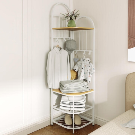 Our garment rack on wheels will be a perfect solution for those who need extra storage space for tons of clothes. This 3-in-1 multifunctional clothing rack includes 2 hanging rods, 2 metal shelves and 4 side hooks, providing large storage capacity for your clothes, hats, bags, shoes and other sundries. In this way, you can free your room from messy clutter. It's also worth mentioning that the heavy-duty metal with powder-coated surface is ultra sturdy and durable. The universal casters swivel smoothly, so you can easily transport clothes organizer around your home. And 2 lockable casters help you lock the garment rack in a breeze. Bullet Point: Organize Clothes Neatly: 2 Heavy-duty hanging rods provide double hanging space to display and organize your shirts, sweaters, long coats and dresses. 2-tier bottom shelves are great for storage baskets, blankets and shoes. More, there are 2 hanging hooks on each side, which enable you to hang hats, bags and scarfs conveniently. Rolling Casters for Easy Mobility: Equipped with 4 universal casters at bottom, and 2 of them are lockable, the garment rack strikes perfect balance between convenient mobility and reliable stability. You can move the rolling clothes rack anywhere you want with less effort. Versatile in Various Places: No matter if your home decoration is modern or industrial, this stylish metal clothing storage organizer always fits well. You can place it in the bedroom for daily suits, in the cloakroom for seasonal clothes or in the balcony for wet clothes. Sturdy Construction & Durable Material: Made of thickened metal, this clothing rack on wheels features excellent sturdiness and load-bearing capacity. Better yet, the surface is processed with powder coating which is capable of resisting rust, thereby serving you better and longer. Trouble of Assembly? Impossible!: The mobile garment rack comes with all necessary parts and a detailed instruction with clear illustrations, so you can put it together quickly and effortlessly. Features: 2 Hanging rods, 2 metal shelves and 4 hooks fulfill your storage demands Open design allows you to fetch what you need with ease 4 universal casters ensure smooth mobility 2 casters with brakes keep the rolling clothing rack in place Suitable for bedroom, entryway, cloakroom, balcony, etc. Sturdy and anti-rust metal for long-lasting service life Easy installation structure saves you time and effort Specifications: Colour: Black Material: Metal Overall Dimension: 86 x 45 x 170 cm (L x W x H) Net Weight:4.5 kg Weight Capacity of Each Hanging Rod: 10 kg Weight Capacity of Each Shelf: 10 kg Package Includes: 1 x Clothing Rack 1 x Instruction Box Qty:1(May vary by batch) Is Assembly Required: Yes
