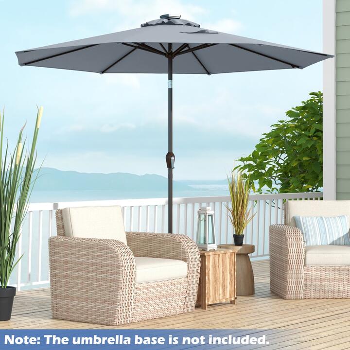 Energy-efficient Lighting: With a total of 24 built-in LED lights (3 on each rib), this outdoor umbrella can provide perfect lighting at night and create a warm atmosphere. More importantly, these lights are powered by solar panel on the canopy, saving energy in a green and efficient way. User-friendly Mechanisms: The convenient crank lifting system allows the umbrella to be easily opened and closed within seconds. The push-button tilt mechanism allows you to adjust the angle of the canopy in all directions to adapt to the moving sun, thus providing you with all-day shade enjoyment. Sturdy and Stable Construction: The heavy-duty iron pole with a diameter of 4 cm provides strong support. 8 sturdy umbrella ribs can effectively resist warping and other damage in the wind. In addition, the unique vent can promote air circulation while enhancing wind resistance to provide additional stability. Weather-Resistant Materials: The powder-coated finish of the metal frame is scratch-resistant and not easy to rust, ensuring a longer service life. The canopy is made of high-quality polyester fabric, which can effectively resist rain and sun rays. In addition, good color fastness allows the umbrella to remain elegant even when used outdoors for a long time. Multi-functional Applications: Our patio umbrellas can provide shade during the day and light up the party at night. It is suitable for residential and commercial locations, as well as any outdoor area such as garden, poolside and beach. When not in use, the sewn-in hook and loop fastener straps can easily wrap the closed umbrella for storage. Specification: Color: Beige/Brown/Blue/Burgundy Material: Iron + Polyester Fabric Canopy Diameter: 3 m Overall Height: 2.5 m Pole Diameter: 38 mm Net Weight: 17 kg Number of Ribs: 8 Number of Lights: 24 Package includes: 1 x Patio Umbrella with Solar Lights 1 x User’s Manual Box Qty:1(May vary by batch)
