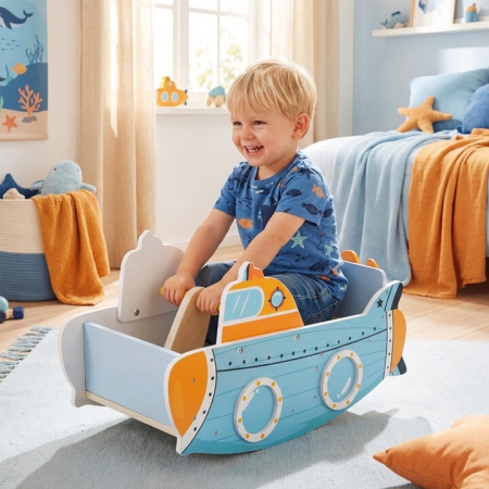 It features a sturdy front grip, supportive backrest, broad seat, and secure side handrails that help children stay balanced during play. Built with smooth edges and rocking limiters, it safely supports kids up to 20 kg, ensuring peace of mind. Experience the magic of rocking playtime enhanced by a playful rotating propeller, adding an interactive touch that encourages imagination and discovery. The gentle rocking motion promotes sensory development, aiding in core strength, coordination, and balance, making it an excellent screen-free activity for early physical and cognitive growth. Designed with Montessori principles, this versatile indoor climbing toy is easy to maintain and fully compliant with EN71 and CPSIA. Perfect as a thoughtful gift, it promises hours of safe, engaging play for young children and relaxed enjoyment for parents. Bullet Point: Optimal Rocking Safety: The wooden rocking toy is designed with a sturdy front handle, supportive backrest, and a wide seat to help children maintain excellent balance. Additionally, secure side handrails provide extra safety during play, giving both kids and parents peace of mind while enjoying every ride. Reliable Construction: Enjoy peace of mind knowing this rocking toy for kids comes with smooth edges and secure rocking range limiters. Moreover, its sturdy wood construction safely supports up to 20 kg, giving your child a worry-free playtime experience you can trust. Interactive Play Features: This innovative rocking boat is designed with a fun rotating propeller that captivates children's attention and sparks their imagination. The unique interactive element turns every rocking session into an exciting adventure. Supports Early Development: The gentle rocking motion promotes essential skills like core strength, balance, and coordination while providing endless fun. As a screen-free option, the rocking toy encourages full-body physical and cognitive growth during play. Ideal Gift and Easy Care: This rocking horse makes a thoughtful birthday or holiday gift. Featuring a smooth surface and fully compliant with EN71 and CPSIA, it's the perfect companion for kids' indoor play, ensuring safe, simple, and joyful family fun. Specification: Color: Blue Material: Basswood Plywood, MDF Overall Dimensions: 70 x 33.5 x 37 cm (L x W x H) Height of Backrest: 13 cm Size of Seat: 29 x 20.5 cm (L x W) Height of Seat: 10 cm Suitable Age: 1+ Max Load Capacity: 20 kg Net Weight: 5 kg Is Assembly Required: Yes Box Qty: 1(May vary by batch) Package Includes: 1 x Kids Rocking Toy 1 x User Guide