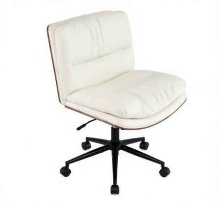 The armless design and spacious seat allow you to sit cross-legged, while the curved backrest supports your back for better relaxation. The high-quality gas lift and up & down lever ensure simple height adjustment. The sponge-padded backrest and seat have a soft comfortable feel. The chair swivels 360° to reach drawers, shelves, and side tables, and the gentle rocking motion brings extra comfort. Smooth faux leather is super easy to clean. The 5-claw base, gas lift and mechanism well support your weight and remain stable while in use. Furthermore, 5 rolling wheels make it easy to move around. BulletPoint: Curved Backrest and Wide Seat: The curved backrest hugs your spine for supportive support. The home office chair also has a 59cm(W) x 44cm(D) large seat, which makes it easy to sit cross-legged, tuck one knee up, or shift positions during long work or makeup sessions. Convenient Height Adjustment: The up & down adjustment lever and SGS certified gas lift offer controlled height adjustment. The adjustable seat height adapts to different desk heights and user preferences, keeping your feet grounded. Rocking Swivel Office Chair: The seat can rotate 360 degrees, allowing you to easily chat with friends from different directions. The 102°-120° rocking function of the cross legged chair adds a calming back-and-forth rhythm to relieve your fatigue. Enduring and Comfy Materials: Wooden panels of back and seat ensure strong and long-lasting support. The faux leather surface wipes clean after spills. Moreover, the elastic sponge and soft PP cotton fillings creates a relaxing sit that stays comfortable through busy mornings and long afternoons. High Stability and Easy Movement: 5-claw metal base spreads weight for outstanding stability. Additionally, 5 silent rolling casters provide smooth mobility for sliding in and out of your workspace or makeup area. The swivel vanity task chair can be used in the home office, study, bedroom, and more. Specification: Colour: Black/ White Material: Faux Leather, Sponge, Metal, Plywood Product Size: 70 x 60 x 85-93 cm (L x W x H) Seat Height: 56-64 cm Seat Width: 59 cm Seat Depth: 44 cm Backrest Height: 37 cm Weight Capacity:110 kg Net Weight: 15 kg Is Assembly Required: Yes PackageIncludes: 1 x Armless Office Chair 1 x Instruction Manual Box Qty: 1 (May vary by batch)