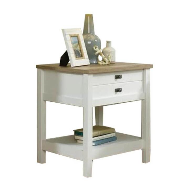 The simple touch of cottage inspiration you've been looking for. Add beautiful style and charming design to any room in your home with this night stand from the Cottage Road collection. Its spacious top surface provides you with all the room you need for your variety of bedside necessities like a lamp, an alarm clock, the TV remote and a convenient spot to charge your smartphone while you sleep. It also features a storage drawer that opens and closes on smooth metal runners for easy access storage of items like tissues and your reading glasses. Its lower open shelf provides you with additional storage space for stacks of books and organizing bins. It's finished on all sides for versatile placement throughout any room in your home – next to your bed or cozied up next to the couch in the living room. It looks great no matter where it stands. Finished in Soft White and detailed a with Lintel Oak accent, this attractive end table is everything you want. Features, Drawer features easy-glide metal runners, Finished on all sides, Open shelf provides additional storage, Dimensions, W 53.8 x D 49.4 x H 61.1 cm, Dispatch Timing, Normally dispatched within 3 business days, Notes, This item is applicable for 7-Days change of mind policy only. Note:- Actual product colours may vary due to lighting, studio photography, room conditions, different screens on various devices. – All our furniture product are flat pack (assembly required) for safe handling purposes.