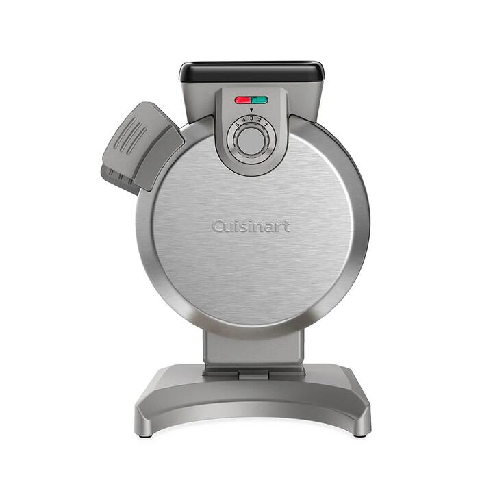 The Cuisinart Vertical Waffle Maker features a smart vertical design for consistent waffle thickness, top to bottom and side to side, that wont spill over the edges. Plus, its compact form takes up minimal space on your benchtop, and less space for easy storage. Expect deliciously golden-brown Belgian waffles that are soft on the inside and crispy on the outside thanks to ready-to-bake and ready-to-eat indicator lights that take the guesswork out of cooking. Whether youre making classic sweet waffles or experimenting with new savoury flavours, the Vertical Waffle maker accommodates a variety of batters, from traditional buttermilk to gluten-free options. Get creative and add fruits, chocolate chips, or nuts to elevate your waffle game. Features • Vertical design – easy to fill, perfect results • Batter pour spout for easy fill • Bakes one round Belgian waffle • Five-setting browning control with audible alert • Ready-to-Bake/Ready-to-Eat indicator lights • Measuring scoop and recipes included What Am I Buying 1 x Waffle Maker Materials Stainless Steel
