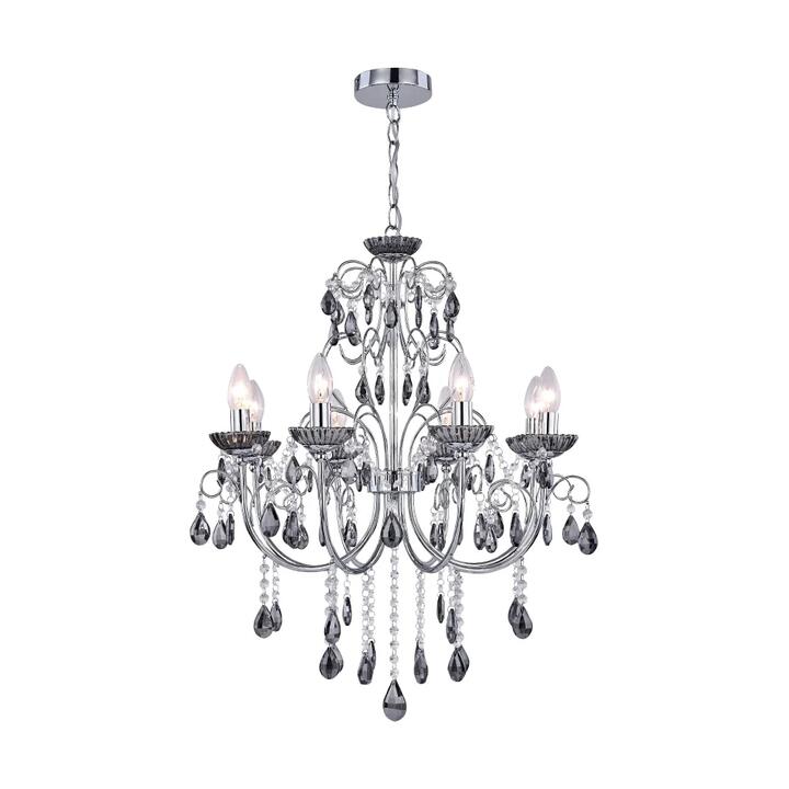 Add a sophistication in your home using Davie Chandelier. It is meticulously made with high quality metal for a premium look. Whether you need a feature piece for your room, or something to match a luxuriously decorated space, the Rovert Chandelier is the perfect option. Features, Chrome Smoke frame is littered with crystals, This chandelier is well suited for a wide range of aesthetics, Durable metal structure for lasting good looks, Suspension chain leads to a metal ceiling canopy, Offers a striking look, with a beautiful mass of 5 bulb, Bulb Fitting: E14, 40W Max, not included. Suspension Length (cm): 150, Dimensions, W 60 x D 60 x H 230 cm, Dispatch Timing, Normally dispatched within 3 business days, Notes, This item comes with 12-Months Manufacturer Warranty. Note:- Actual product colours may vary due to lighting, studio photography, room conditions, different screens on various devices.