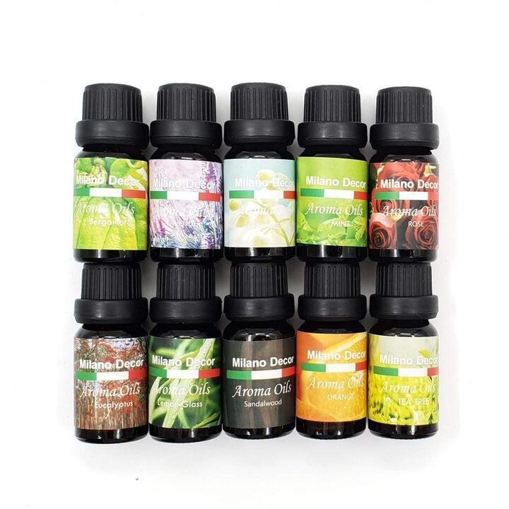 Create the ultimate aromatherapy oasis with this delightful pack of 10 Aroma Oils by Milano, great for travel, home or the office! Comprises of 10 x 10ml aromatic oils to be used with Milano Decor Ultrasonic Diffusers Enhances the ambience of your home with an aromatic experience Emits cool and rejuvenating scents, ideal for diffusing in your living room, bedroom, office or dining area! Comes presented beautifully in a Milano box to make for a delightful gift! Also suitable to be used with your existing diffuser Scents include orange, lavender, tea tree, peppermint, eucalyptus, lemongrass, jasmine, rose, bergamot, and sandalwood What Am I Buying 10 x 10ml Aroma Oils in Orange, Lavender, Tea Tree, Peppermint, Eucalyptus, Lemongrass, Jasmine, Rose, Bergamot and Sandalwood Material Dimensions 16cm x 11cm x 5cm