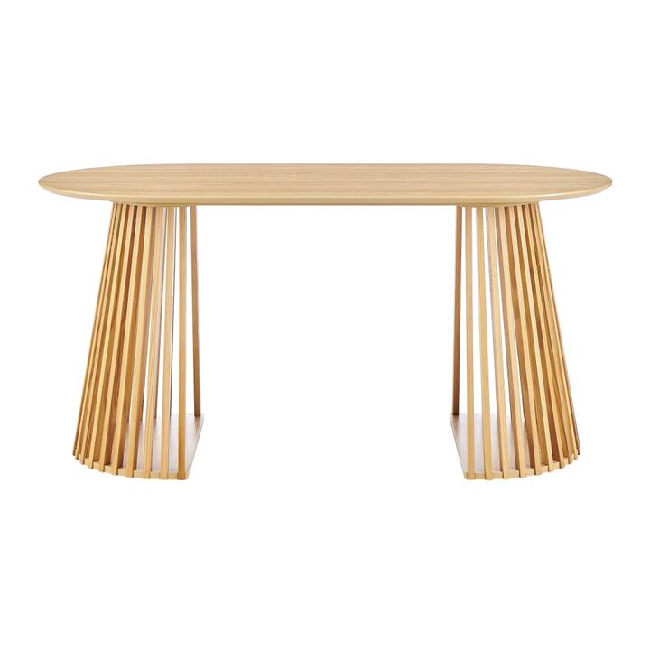 Description, Create a warm and inviting dining space with this 160cm oak rectangular dining table, designed for modern homes and family gatherings. Featuring a sturdy 18mm MDF melamine top and a unique pine wood slatted base, this table combines natural style with long-lasting durability. The light oak finish brings a fresh and timeless look, perfect for kitchens, dining rooms, or open-plan spaces. With a weight capacity of 50kg, this oak dining table is practical for everyday meals and entertaining guests. Easy-to-follow assembly instructions are included, making setup quick and hassle-free. Features, Contemporary 160cm rectangular design with a warm light oak finish, adding a timeless and inviting touch to kitchens, dining rooms, or open-plan spaces, Durable 18mm MDF tabletop with melamine coating , offering a smooth, easy-to-clean surface resistant to everyday wear and spills, Robust solid pine wood base with distinctive slatted legs , combining modern aesthetics with excellent structural stability, Generous 50kg weight capacity , providing reliable support for family meals, entertaining guests, and daily use, Quick and hassle-free assembly with all instructions included , ensuring convenient setup right out of the box, Dimensions, W 160 x D 80 x H 76.5 cm, Dispatch Timing, Normally dispatched within 3 business days, Notes. Note:- Actual product colours may vary due to lighting, studio photography, room conditions, different screens on various devices. – All our furniture product are flat pack (assembly required) for safe handling purposes.