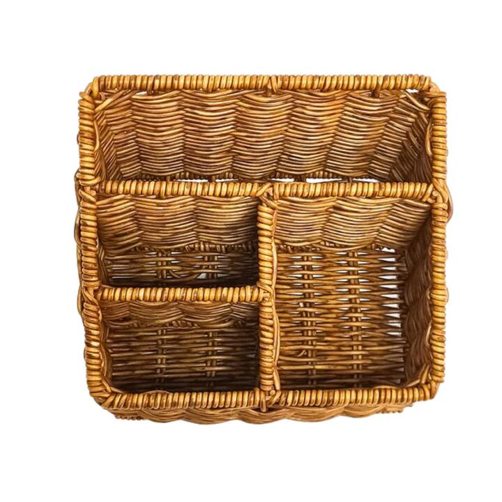 Experience the charm and utility of the Storage Basket, a practical and aesthetically pleasing solution for home or office organization. Crafted from durable PP Rattan and reinforced with a sturdy metal frame, this basket is designed to provide long-lasting use while enhancing the look of your space. Its compact size is ideal for storing small items like accessories, toiletries, office supplies, or other household essentials. Product Features:, Washable Material: Made from easy-to-clean PP Rattan, ensuring the basket stays in excellent condition with minimal upkeep. Durable Construction: The robust metal frame offers durability, maintaining the basket's shape and function even with frequent use. Versatile Design: The mixed-color scheme provides a stylish look that fits seamlessly with various interior styles, from modern to traditional. Exquisite Craftsmanship: Meticulously woven with attention to detail, showcasing quality and enhancing its aesthetic appeal. Decor and Storage Solution: This basket not only provides efficient storage but also serves as a decorative piece that adds visual interest to any room. Product Dimensions: , W 15.5 x D 18 x H 13.5 cm. Note:- Actual product colours may vary due to lighting, studio photography, room conditions, different screens on various devices.