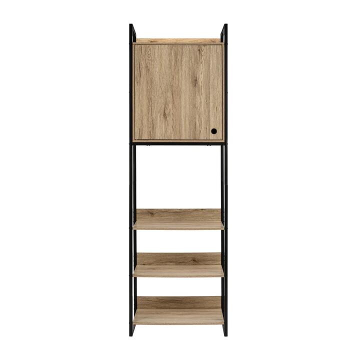 The 3-Shelves Cupboard Storage Cabinet offers a sleek and practical storage solution with a contemporary touch. Featuring a natural finish combined with a striking black metal frame, this cabinet is designed for both style and functionality. With three open shelves, a full-width hanging rail, and a top surface for additional storage, it provides ample space to organize your essentials. Features:, Durable Construction: Made from 12mm particle board with a stylish paper finish and supported by a black powder-coated metal frame. Ample Storage: Three open shelves and a top surface provide generous space for storage and display. Full-Width Hanging Rail: Includes a hanging rail inside the cabinet for convenient clothing or accessory storage. Sleek Design: Black metal handle and frame add a modern, industrial touch to the natural wood finish. Safety Hardware Included: Comes with wall-mount safety hardware for added stability and safety. Dimensions, W 60 x D 48 x H 190 cm, Dispatch Timing, Normally dispatched within 3 business days, Notes. Note:- Actual product colours may vary due to lighting, studio photography, room conditions, different screens on various devices. – All our furniture product are flat pack (assembly required) for safe handling purposes.