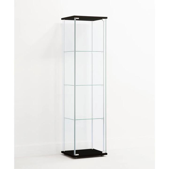 Take storage to a new heights with this glass cabinet. It showcases the four clear tiers that is perfect for your displays and other collection. Designed to create a comfortable and inviting retreat within the home, this piece is defined by its casual finishes and variety of organic textures and materials that combine to deliver a relaxed aesthetic. Features, Made from tempered glass and particleboard with paper veneer, Features 4 tier with clear glass sides and shelves that adds a classy style in your home space, Finished in black, the top and bottom particle board panels creates a unique frame, Comes with an anti-topple anchors for security and safety, Framed with iron tube with electroplate on four corners to support the glass, Dimensions, W 42.5 x D 36.5 x H 162 cm, Dispatch Timing, Normally dispatched within 3 business days, Notes, This item is applicable for 7-Days change of mind policy only. Note:- Actual product colours may vary due to lighting, studio photography, room conditions, different screens on various devices. – All our furniture product are flat pack (assembly required) for safe handling purposes.