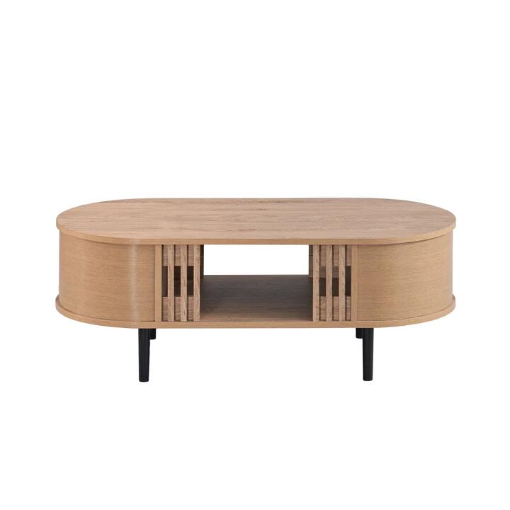 Enhance your living room with the Kassy Open Shelf Wooden Coffee Table in Oak, a stylish blend of function and modern design. Crafted from MDF and particleboard with a realistic laminated woodgrain finish, this table brings a warm, natural look to your home. Its oval design and open shelving provide practical storage for books, magazines, or décor while keeping essentials within reach. Supported by sturdy black plastic legs, the table ensures stability and durability for everyday use. With a 20kg load capacity on top and 5kg on the shelf, it's perfect for serving drinks, displaying décor, or organizing small items. Compact yet functional, the Kassy Coffee Table is a versatile centerpiece for modern and minimalist interiors. Features, Modern oval coffee table design with a warm natural oak woodgrain finish, perfect for contemporary and minimalist interiors, Crafted from durable MDF and particleboard with realistic 3D paper lamination for a stylish and easy-to-maintain surface, Practical open shelf storage , ideal for organizing books, magazines, remote controls, or decorative items, Sturdy black plastic legs provide reliable support and stability for everyday use, Weight capacity: Top surface supports up to 20kg; lower shelf holds up to 5kg, Compact and functional size: W 105 × D 50 × H 37 cm – suitable for both small and large living spaces, Versatile centerpiece , perfect for serving drinks, displaying décor, or adding practical storage to your living room, Dimensions, W 105 x D 50 x H 37 cm, , Dispatch Timing, Normally dispatched within 3 business days, Notes. Note:- Actual product colours may vary due to lighting, studio photography, room conditions, different screens on various devices. – All our furniture product are flat pack (assembly required) for safe handling purposes.