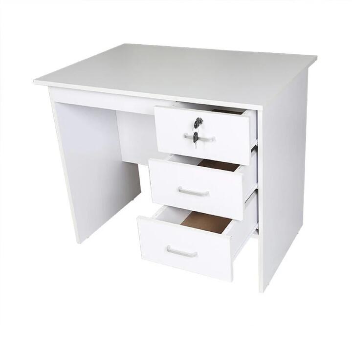 Generous size and storage options, this desk offers many uses, office desk for your home office or study table for room this will perform its purpose with great style. Three generously sized drawers, where one of them is able to be locked for security. Metal runners support the drawers for a smooth opening and closing experience. Clean looks and aesthetic allows it to be in many styles and interiors. Product Features:, Features three generously sized lockable drawers to store a range of office supplies and essentials. Metal runners in drawers coated with anti-rust solution for long-lasting wear, Fashioned using durable laminate melamine board for lasting strength and stability, Stately addition to your home office or any living space to effortlessly add functionality and style, Classic desk design suits a wide range of both traditional and contemporary interior styles for your convenience, Product Details:, Materials: Melamine Laminated Board, Primary Colour: White, Box Contents: 1 x Study Desk, Assembly Required: Yes, Product Warranty: 12 months, Product Dimension:, Overall Dimension: W 90 x D 60 x H 73cm. Note:- Actual product colours may vary due to lighting, studio photography, room conditions, different screens on various devices. – All our furniture product are flat pack (assembly required) for safe handling purposes.