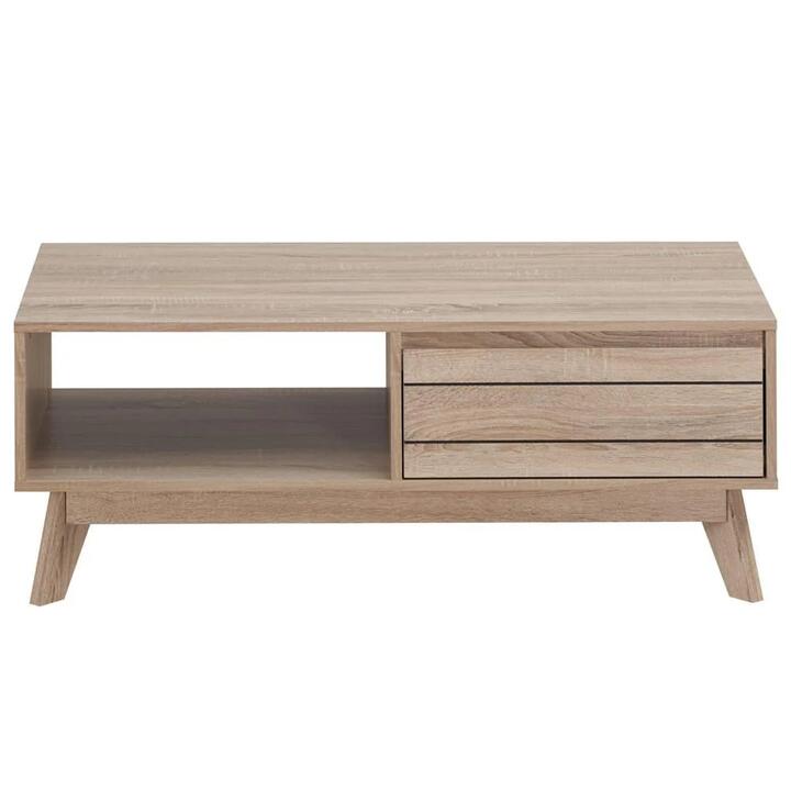 When relaxing in the living room getting a drink is just normal, but having a spot to place the drink is important. It has a pretty spacious table top so it can have plenty of things on in. There is also an open storage to place items such as books and magazines. The drawer allows to put smaller items securely. All timber solid build that can survive the rigors of daily use. Natural oak finish that can match most looks and styles. Features, Constructed of particle board with 3D Oak paper lamination finish, Open storage to place items such as books and magazines, Drawer allows to store smaller items securely, Spacious table top so it can have plenty of things on in, Natural oak finish that can match most looks and styles, Dimensions, W 140 x D 60 x H 41 cm, Dispatch Timing, Normally dispatched within 3 business days, Notes, This item is applicable for 7-Days change of mind policy only. Note:- Actual product colours may vary due to lighting, studio photography, room conditions, different screens on various devices. – All our furniture product are flat pack (assembly required) for safe handling purposes.
