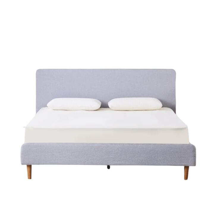 The King Size Bed Frame is a stylish and practical addition to any bedroom, seamlessly combining contemporary design with comfort and durability. Featuring square tufting and a knitted grey upholstery, this bed frame not only elevates your room's aesthetic but also provides a cozy sanctuary for relaxation. Whether you're enjoying a quiet reading session or a movie night, the foam-padded headboard ensures optimal support, making it a smart choice for modern living. Product Features:, Elegant Design: The square tufting in a knitted grey upholstery adds a touch of sophistication to your bedroom, enhancing the overall decor. Cozy Foam-Padded Headboard: Designed for comfort, the headboard is foam-padded and fabric-covered, perfect for lounging while reading or watching TV. Hassle-Free Assembly: The bed frame is easy to assemble, requiring only an Allen Key and an additional person for assistance, making setup quick and straightforward. Sturdy Construction: Crafted from a durable combination of plywood, foam, fabric, and robust rubber wood legs, ensuring long-lasting stability and support. Easy Maintenance: Simple spot cleaning with a mild detergent and a damp cloth keeps the bed frame looking fresh and new. Dimension:, W 189.5 x D 217.5 x H 95 cm. Note:- Actual product colours may vary due to lighting, studio photography, room conditions, different screens on various devices. – All our furniture product are flat pack (assembly required) for safe handling purposes.