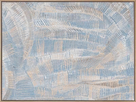Dhala-Bu-Nya Light Blue Canvas Art Print – With its dreamy light blue and beige palette, one shade floating through the other in a harmonic dance, this Aboriginal artwork by Wiradjuri artist, Amanda Hinkelmann, evokes a sense of movement. Filled with repetitive lines and overlapping shapes, this Indigenous art piece brings character and depth to any space. After a long drought, the ground, desperate for water, resists its penetration due to its previous absence. This artwork metaphorically represents the absence of support when needed most and the reluctance to accept it when finally offered. Urban Road is committed to investing a stream of ongoing financial support back to our artist community. For every artwork sold, a percentage of the sale price goes directly back to the artist. This versatile collection of Indigenous art by renowned Wiradjuri artist, Amanda Hinkelmann, features an expressive neutral palette in multiple colourways, including muted brown, blue, green, and pink tones. Perfect for celebrating NAIDOC Week 2024, these Aboriginal art pieces bring warmth, comfort, and a touch of elegance to your space. Support First Nations art and let your walls tell stories rich in culture and heritage.