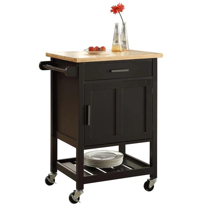 Add style to your kitchen with our compact Denver Kitchen Trolley featuring natural solid wood benchtop. The kitchen trolley features a well sized drawer on qaulity slider runners, tea towel holder, Open storage space and internal storage behind a hinged door. It will provide that extra storage space you are looking for in your kitchen or dining area. Includes 2 lockable castor wheels allowing you to move it freely and easily into any area of your home. For domestic use only" Features:, Solid Rubberwood 18mm Counter Top, 1 Drawer with metal slider runners, 1 internal storage compartment with hinged door, White Painted MDF Construction, Decorative silver painted metal feature handles, Open shelving rack 15.5cm high, Tea towel rod holder, 2 x Lockable castor wheels, Castors swivel 360 degrees, Indoor Use Only / Domestic use only, Overall Dimensions:, Width: 67cm ( including rod holder), Depth: 50cm, Height: 89cm, Bench Top Dimensions:, Width: 60cm, Depth: 49.5cm, Thickness: 1.8cm, Drawer Internal Dimensions:, Width: 42cm, Depth: 33.8cm, Height: 9cm, Drawer Front Width: 48cm, Drawer Front Height: 10cm, Cabinet Internal Overall Dimensions:, Width: 48cm, Depth: 42cm, Height: 37cm, Open Shelving Dimensions:, Width: 48cm, Depth: 44.5cm, Height: 15.5cm, Height from Floor to base of kitchen trolley: 13cm Colour: Black with Natural Wood Top Package Contents" 1 x Kitchen Trolley 1 Drawer 1 Door (with parts included for assembly) 1 x Instruction Manual & Warranty. Note:- Actual product colours may vary due to lighting, studio photography, room conditions, different screens on various devices. – All our furniture product are flat pack (assembly required) for safe handling purposes.