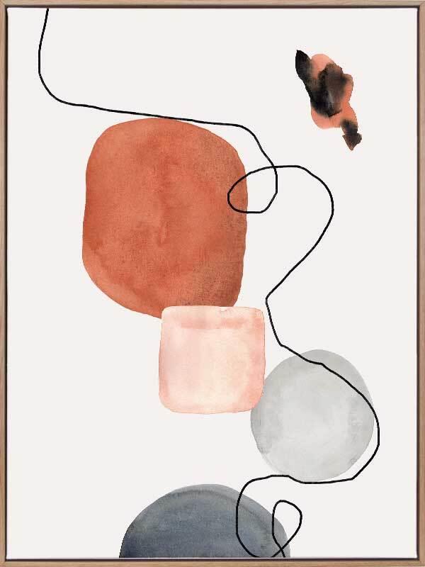 Down the Line I Canvas Art Print – Painted shapes in burnt orange, pink and grey balance beside a looping black line in this playful yet considered abstract piece. Pairs with Down the Line II. Disclaimer: Colours of Urban Road products may vary due to device display differences, monitor settings, inherent product variations, lighting conditions, and screen calibration. While we strive for accuracy, slight variations may occur. For any concerns, contact our customer support. Your satisfaction is our priority. STRETCHED CANVAS Urban Road's stretched canvas fine art prints are professionally printed on polycotton artist canvas, using archival inks and then stretched and gallery wrapped. This means the image is stretched around a 38mm frame to create a seamless, museum-quality finish. All stretched and box framed art prints arrive ready to hang. SHADOW BOX FRAMES We also offer the option to add a shadow box frame to your Urban Road canvas art print. A little different from a traditional framed print, the canvas sits within the box frame with a 5mm gap, creating a sophisticated shadow effect between the frame and the canvas. Our solid timber box frame mouldings are 10mm wide, and 55mm deep, and add approximately 40mm to the length and height of the listed canvas size. ROLLED CANVAS ART At Urban Road, we also offer you the option to purchase your canvas art print unframed to allow you to have it framed your own way. As with our stretched and box framed canvas products, our rolled canvas prints are professionally printed on durable, museum-quality, matte coated polycotton canvas and made to order. Our rolled canvas products are printed to the listed stretched size, and come with an additional 45mm mirrored edge plus another 60mm white border to allow for gallery wrapping.