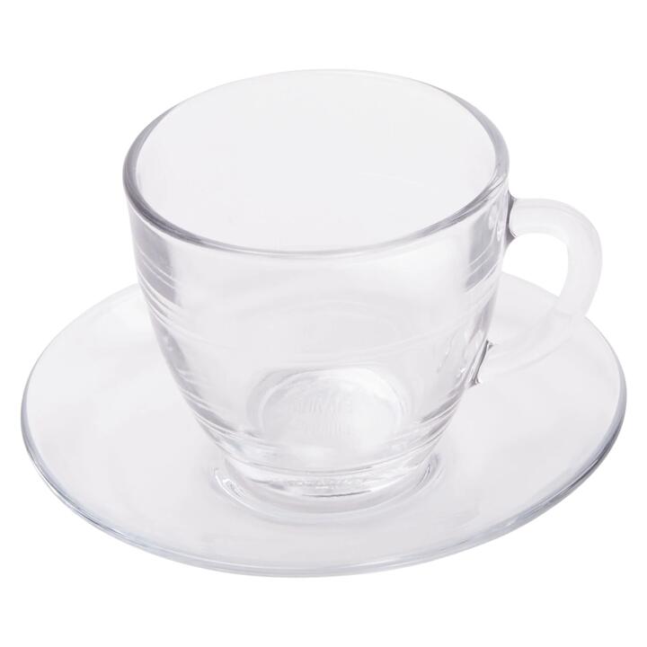 For a relaxing moment or to recharge your batteries after a busy day, what could be better than a warm drink? You can make simple espressos and comforting hot teas in the Gigogne tempered glass tea cup, matched with a saucer for the table. Features • Teacup and saucer set great for everyday use• Named after an old French word meaning “nested” and as the name implies these glasses are stackable and can be easily stored• Duralex tempered glass is on average 3.5 times more resistant and 6 times stronger than non tempered glass products• Withstands minimal thermal shock of 130°C • 100% hygienic, non-porous and lead/cadmium/BPA free• Handwash recommended What Am I Buying 6 x Cups and Saucers Materials Glass Dimensions 17.5cm x 39cm x 8cm
