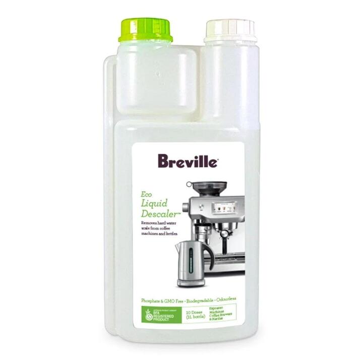 Don't let a dirty machine ruin the taste of your coffee. Keeping your espresso machines clean is easier than ever with the Breville Eco Liquid Descaler. This handy kit helps to remove hard water scale build up from inside your coffee machines and kettles, reducing the risk of ingesting harmful bacteria and bad tastes. The Breville Eco Liquid Descaler Kit includes 1 x 1L bottle of liquid descaler, suitable for 10 doses to thoroughly clean your machine. Completely odourless, phosphate and GMO free, and biodegradable, the Breville Eco Descaler is a must-have accessory for coffee lovers. FeaturesRemoves hard scale from coffee machines and kettles- Reduces bacteria risks- Odourless- Phosphate & GMO free- Biodegradable- 1 bottle = 10 doses