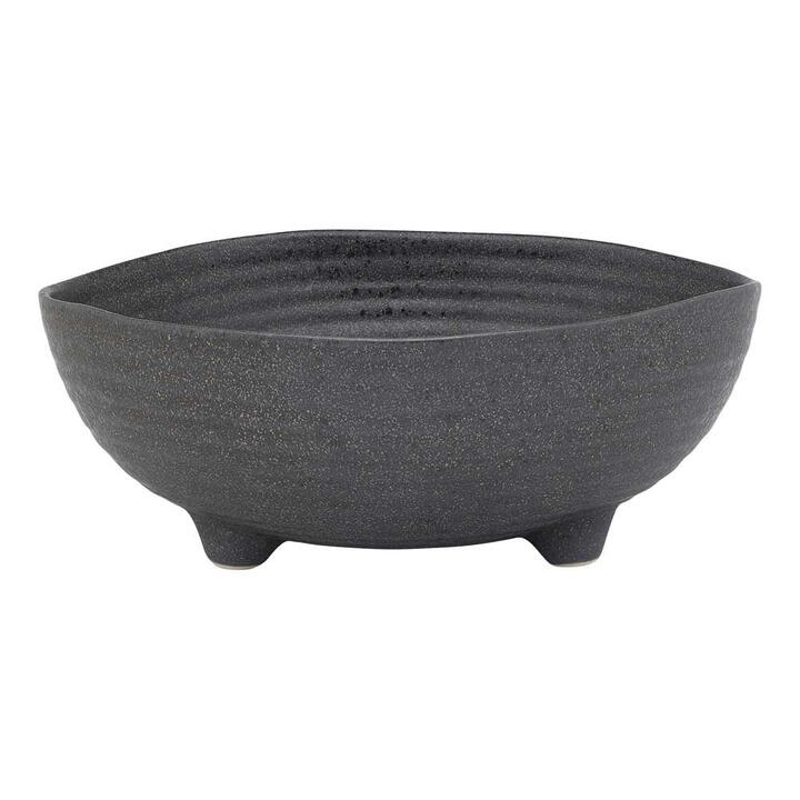 Introducing the Ecology Ottawa Chunky Leg Bowl 25cm. Perfect for everyday use or special occasions when paired with pieces from the Ecology Ottawa servingware range. Ecology's Ottawa Collection offers a striking stoneware collection with compelling texture and depth. The organic shape of each piece is enhanced by the gentle circular ridging and rustic edges. A deep charcoal colour is accentuated by a slight speckle in a darker tone and is finished with a reactive matte glaze Features • This product features a reactive glaze, variations in colour and design may occur• This item comes in a coloured gift box for easy gifting What Am I Buying • 1 x Bowl Materials Stoneware