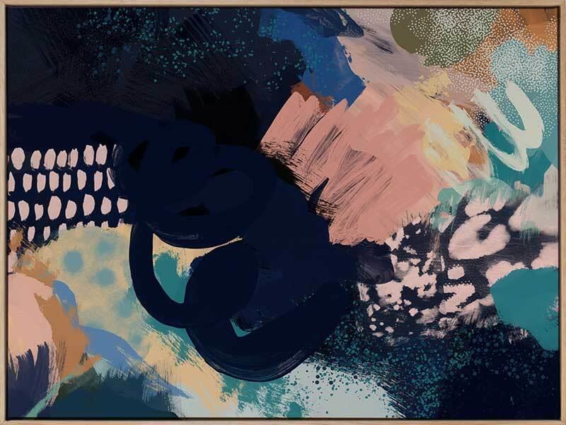 Elbe Canvas Art Print: A striking abstract artwork that features overlaid brushstrokes, splatters and patterns in a bold blue, pink and teal colour palette. 2020 AUTUMN/WINTER COLLECTION: REVERIE Disclaimer: Colours of Urban Road products may vary due to device display differences, monitor settings, inherent product variations, lighting conditions, and screen calibration. While we strive for accuracy, slight variations may occur. For any concerns, contact our customer support. Your satisfaction is our priority. STRETCHED CANVAS Urban Road's stretched canvas fine art prints are professionally printed on polycotton artist canvas, using archival inks and then stretched and gallery wrapped. This means the image is stretched around a 38mm frame to create a seamless, museum-quality finish. All stretched and box framed art prints arrive ready to hang. SHADOW BOX FRAMES We also offer the option to add a shadow box frame to your Urban Road canvas art print. A little different from a traditional framed print, the canvas sits within the box frame with a 5mm gap, creating a sophisticated shadow effect between the frame and the canvas. Our solid timber box frame mouldings are 10mm wide, and 55mm deep, and add approximately 40mm to the length and height of the listed canvas size. ROLLED CANVAS ART At Urban Road, we also offer you the option to purchase your canvas art print unframed to allow you to have it framed your own way. As with our stretched and box framed canvas products, our rolled canvas prints are professionally printed on durable, museum-quality, matte coated polycotton canvas and made to order. Our rolled canvas products are printed to the listed stretched size, and come with an additional 45mm mirrored edge plus another 60mm white border to allow for gallery wrapping.