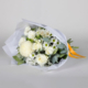 Celebrate with our Elegance White Bouquet, a stunning arrangement crafted with care. This bouquet features delicate white disbud mums, snapdragons, roses, spray roses, gum foliage and more, expertly arranged to convey purity and grace. Each bouquet is meticulously wrapped in white kraft and tissue paper, tied with a vibrant orange satin ribbon for a touch of sophistication. Order today and know that 5% of your purchase will support You Matter, a charity dedicated to helping women and children affected by family violence. Enjoy the convenience of same-day flower delivery across Australia, ensuring your thoughtful gift arrives on time.
