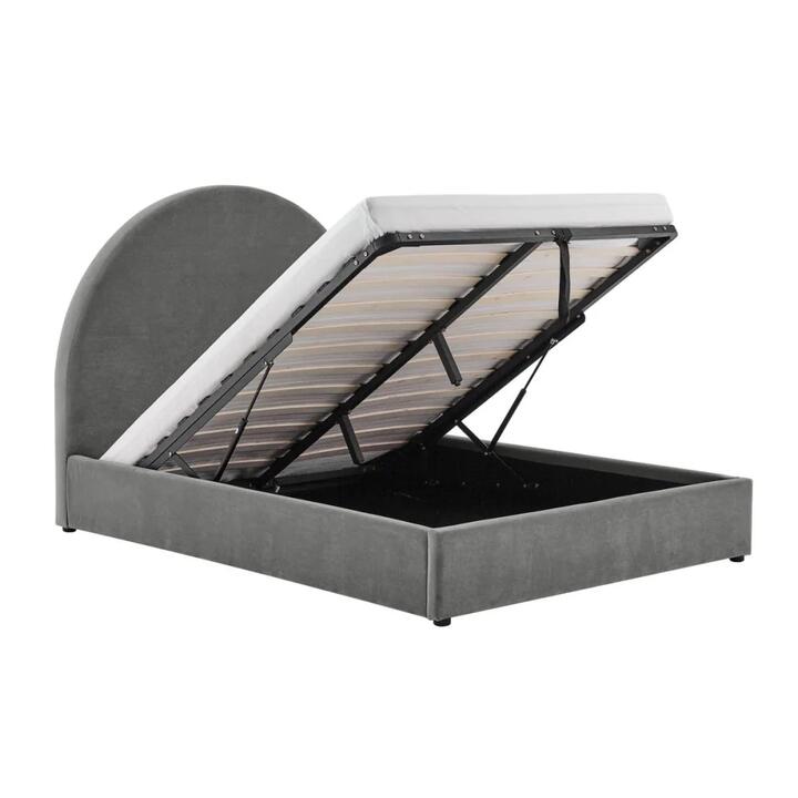 Bring stunning, elegant curves to the bedroom with an arched bed head, upholstered in lush velvet, that will soften your space and add a touch of drama to your decor. Mid-century inspired curved headboard bed, Lush velvet upholstery, Gas lift mechanism, Storage space under bed, Solid timber slats, Featuring luxurious texture and captivating shape, the Eloise Curved Gas Lift Bed Frame will elevate your interior and transform your bedroom into a cosy, stylish setting. Arc de Triomphe, Inspired by mid-century design trends, with a touch of art deco, this bed frame will truly be a triumphant centrepiece of your bedroom that pays homage to tried and true aesthetics. Handy hidden storage, Perfect for storing sheets, winter blankets, pillows and more, this design features a gas lift mechanism that lifts easily for access to the convenient hidden under-bed storage. Dimension: D 193 x W 220 x H 126cm. Note:- Actual product colours may vary due to lighting, studio photography, room conditions, different screens on various devices. – All our furniture product are flat pack (assembly required) for safe handling purposes.