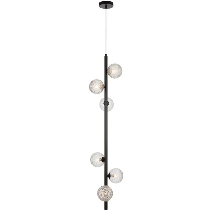 The Elson is designed for those who cherish distinct modern elegance. The detailed design reflects both precision and artistic inspiration. Merges effortlessly with various decorative themes and layouts. Strikes the perfect balance between form and function. Every glance reveals new depths of its impeccable detailing. Invest in lighting that resonates with your unique aesthetic vision. Specifications, Fixture Colour: Black,Clear, Fixture Finish: Matte, Fixture Material: Iron,Glass, Cable Length: cm, Globe Type: G9, Globe Included: No, Wattage: 6 x 6w (max), Voltage Input: 240V, IP Rating: IP20, Dimensions, Shade Diameter (cm): 12, Fixture Height (cm): 120, Fixture Width (cm): 26.5, Dispatch Timing, Normally dispatched within 3 business days, Notes. Note:- Actual product colours may vary due to lighting, studio photography, room conditions, different screens on various devices.