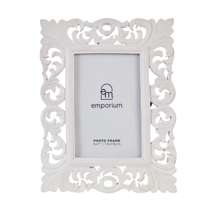 Emporium offers a fun collection thats exciting, modern and colourful – express your individuality through a fashionable range that incorporates personality! The Emporium Iris Wood Photo Frame makes a perfect gift for a special friend or loved one. This frame is crafted from resin with a lace-inspired frame in soft white hues. Features• Place a photograph of your treasured memories in it and display on your desk, shelf, bedside table or mantelpiece• Uplift your space with this charming Iris Photo Frame from Emporium• Available in 4×6 inch and 5×7 inch sizes (sold separately)MaterialsResinDimensions• 4×6 inch (10cm x 15cm)• 5×7 inch (12cm x 17cm)ManufacturedMade in China