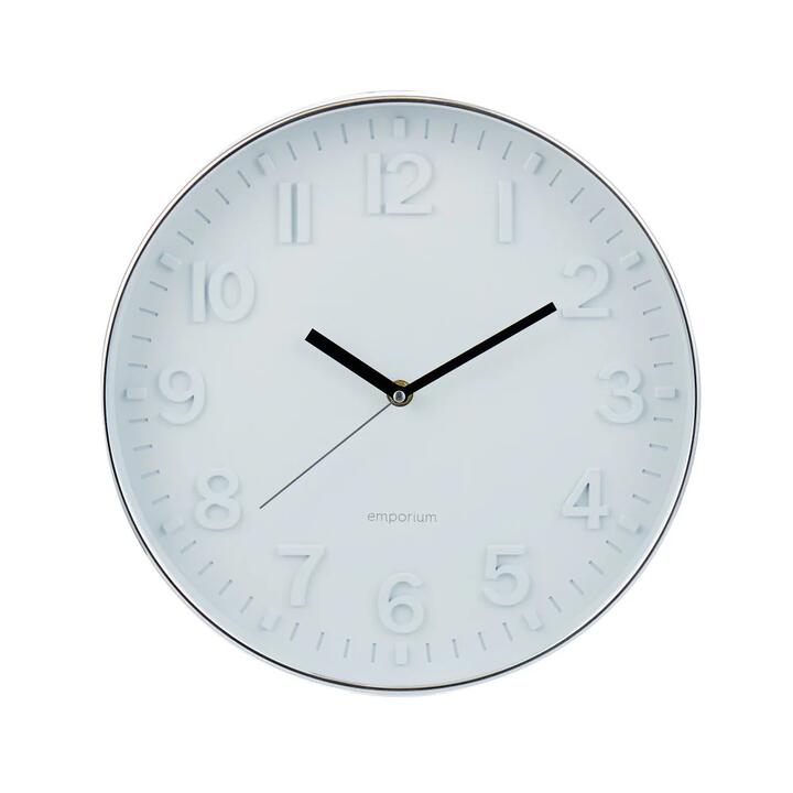 You'll never be late again with the Emporium Metric Wall Clock! Emporium offers a fun collection that is exciting, modern and colourful. Express your individuality through a fashionable range that incorporates personality. Our decorative clocks are the perfect accessories for homeowners who enjoy quirky and colourful aesthetics. The Emporium Metric Wall Clock is both stylish and a practical necessity. This clock is sure to liven up any new home with colour and character. Features• It features a white body with numbers in a charming rounded font and silver detailing on a plastic surface • Place it on an empty wall in the dining room, lounge room, kitchen or in a hallway for the best approach • The simplistic modern design will add character and function to your room • Size: 30.5 x 30.5 x 4.3cm • Packaged in a stunning gift boxMaterials• Plastic/MetalDimensions• 30.5 x 30.5 x 4.3cm