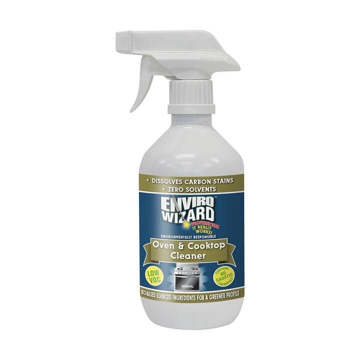 Enzyme Wizard Oven & Cooktop Cleaner is a non-caustic industrial strength oven and cooktop cleaner which is also suitable for range hoods, BBQ's and floors which may be soiled with fats and grease. Bio-based and naturally derived, this cleaner is a moderately alkaline solution which works with a synergistic effect of combining surfactant technology with non-petroleum based solvents to remove fats, oils and greases. Unlike other cleaners, Enzyme Wizard Oven & Cooktop Cleaner emits no harsh fumes and because it is formulated with a low VOC and high boiling point, it is safer than most products in the market. As it is readily biodegradable it can safely be discarded down the drain. Enzyme Wizard Oven & Cooktop Cleaner comes as a ready-to-use solution which you simply spray on the soiled surface. The heavier the soiling, the longer you leave the solution before wiping clean. Available in 2 sizes, 500ml and 5L Features Breaks down fats, greases and oil Naturally lifts grease from all surfaces Doesnt emit any harsh fumes Bio-based and naturally derived product Safer than other chemicals and can be discarded down the drain Ready to use Available in 2 sizes, 500ml and 5L What Am I Buying 1 x Cleaning product