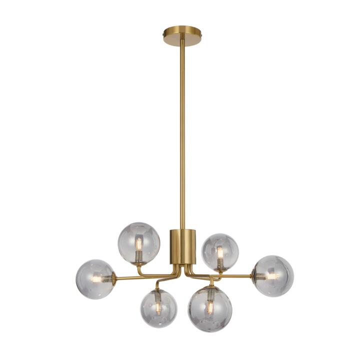 Enhance your living spaces uniquely with the artistry of the Felton. Built to enhance interiors with a blend of functionality and beauty. A testament to innovative design meeting everyday practicality. Ensures your home feels welcoming and tastefully illuminated. Make this piece the final, perfect addition to your interior design. Craft a memorable atmosphere with this exquisite lighting selection. Specifications, Fixture Colour: Antique Gold,Smoke, Fixture Finish: Polished, Fixture Material: Glass,Iron, Cable Length: cm, Globe Type: G9, Globe Included: No, Globe Dimmable:Globe Dependant, Wattage: 6 x 6w (max), Voltage Input: 240V, IP Rating: IP20, Dimensions, Shade Diameter (cm): 12, Fixture Height (cm): 29.5, Fixture Diameter (cm): 65, Dispatch Timing, Normally dispatched within 3 business days, Notes. Note:- Actual product colours may vary due to lighting, studio photography, room conditions, different screens on various devices.